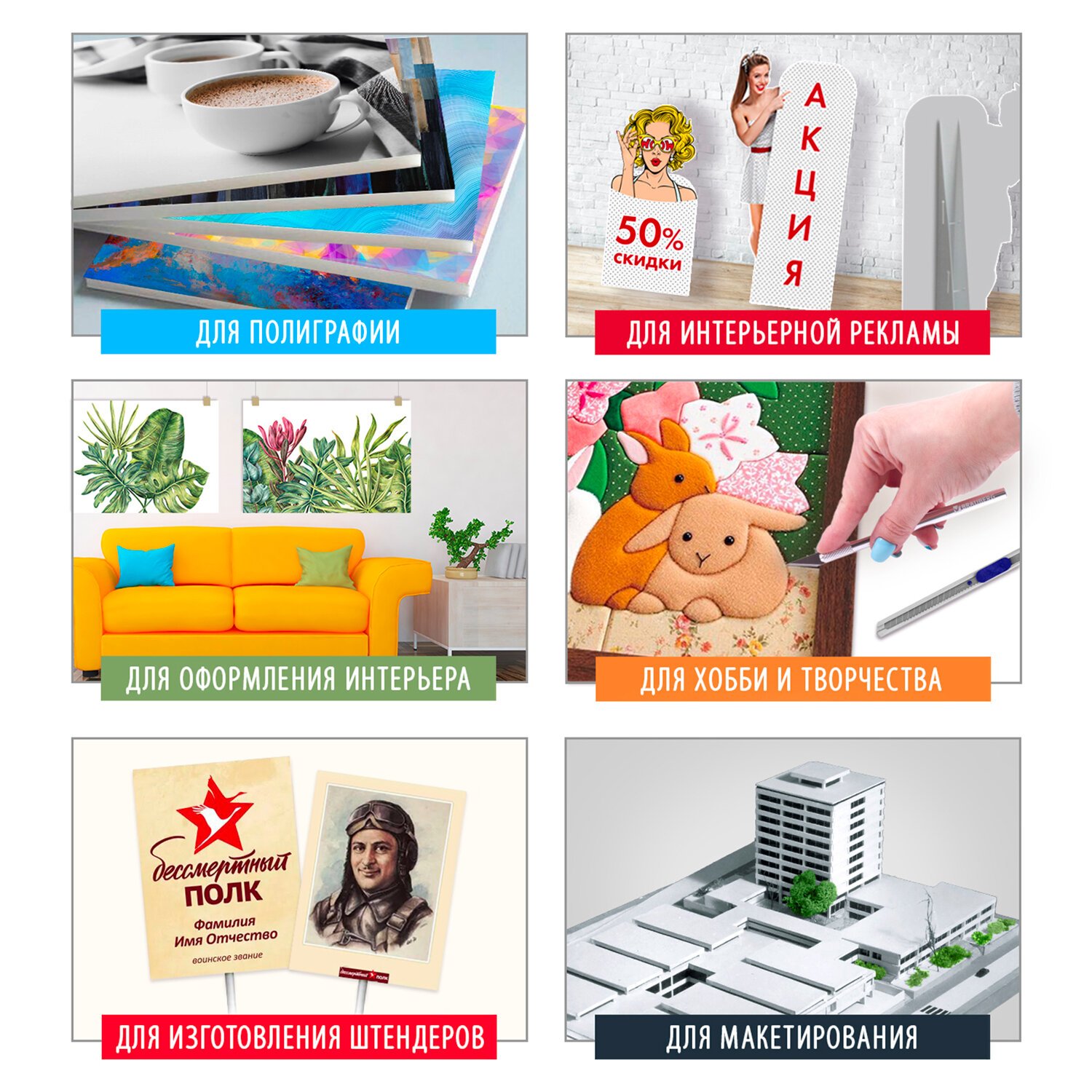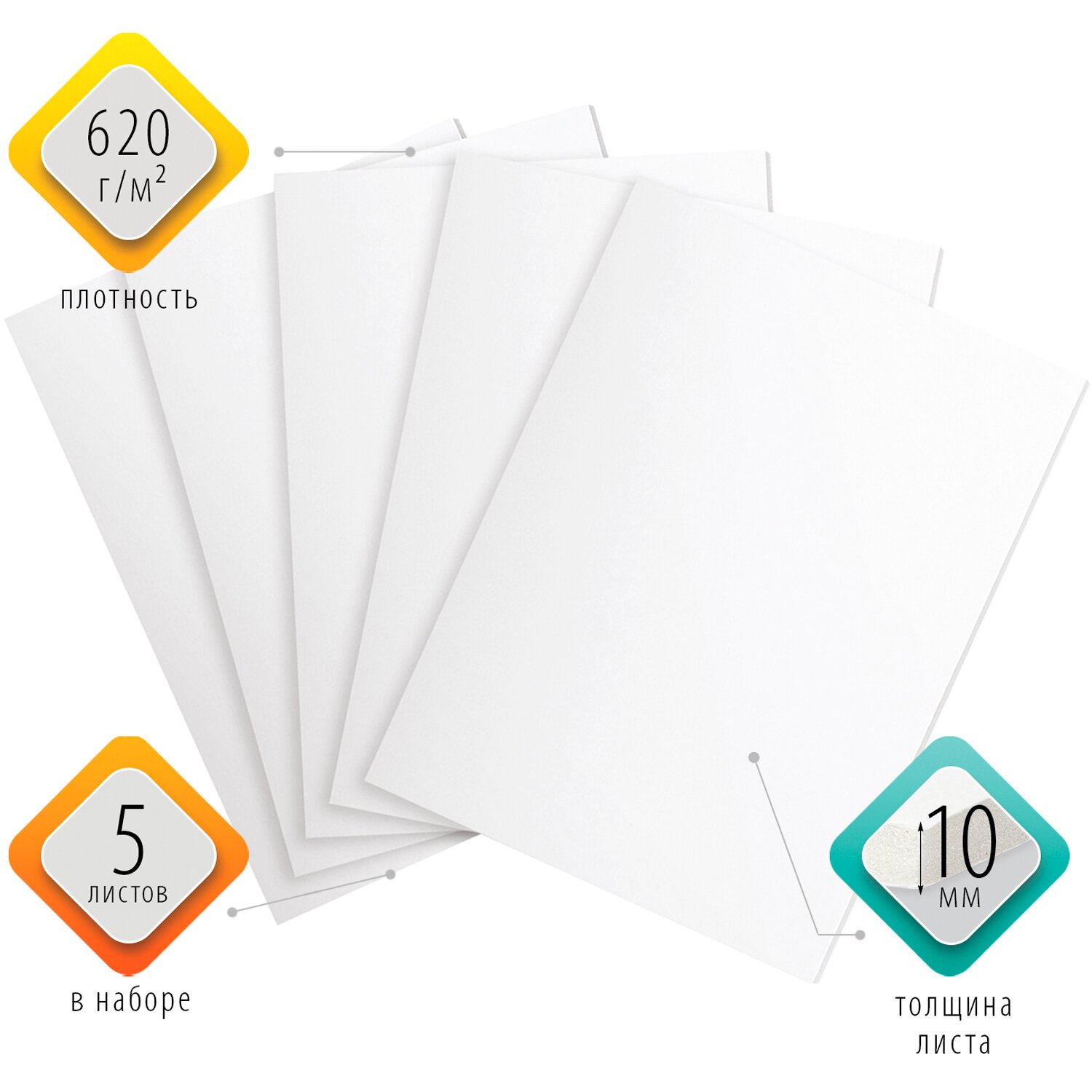 Пенокартон матовый, 70х100 см, толщина 10 мм, белый, КОМПЛЕКТ 5 листов, BRAUBERG, 112476