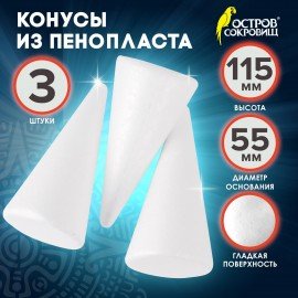 Пенопластовые заготовки для творчества "Конусы", 3 шт., 115 мм, ОСТРОВ СОКРОВИЩ, 661375