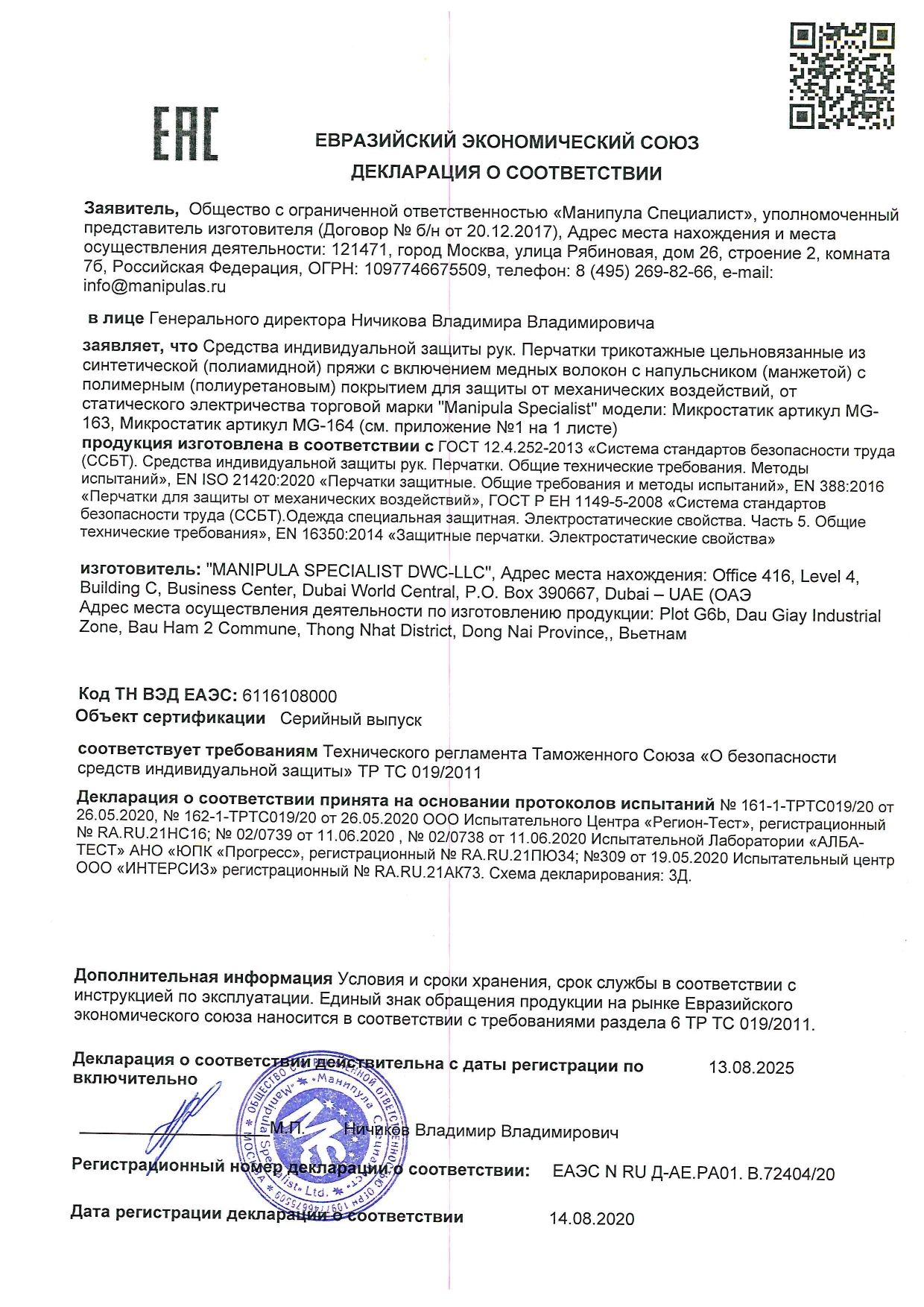 | Соответствует требованиям ГОСТа | ГОСТ 12.4.252-2013; EN ISO 21420 |