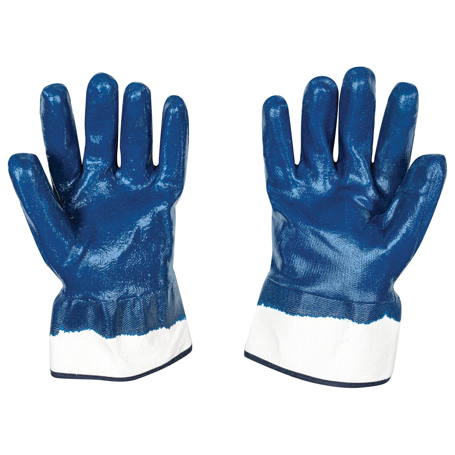 100% хлопковая основа jersey (джерси) с полным нитриловым покрытием, манжет крага. Высокие показатели защиты при длительном сроке службы. Отличное сопротивление истиранию и разрыву, стойкость к проколу и порезу. Стойкость к слабым растворам кислот, МБС, герметичны, рекомендованы для продолжительного ношения.