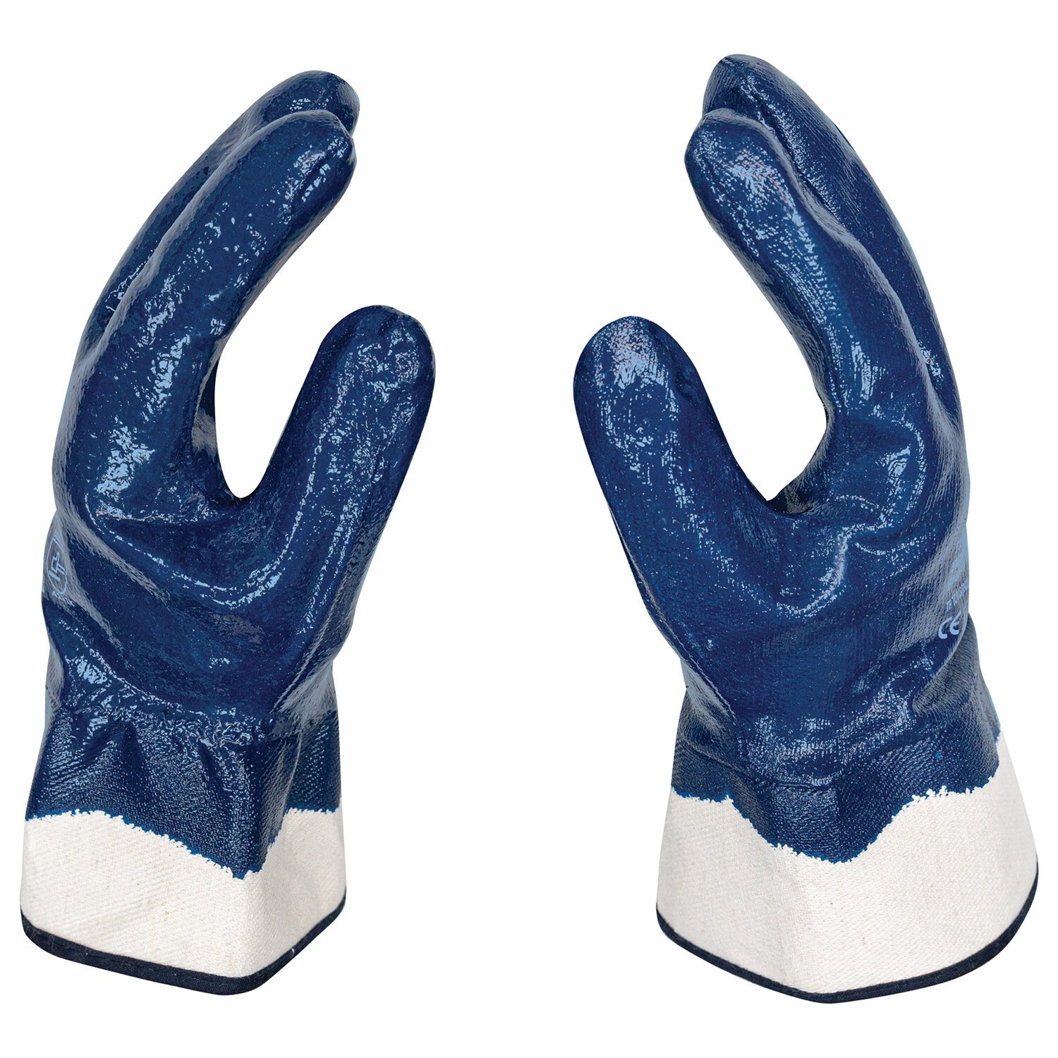 100% хлопковая основа jersey (джерси) с полным нитриловым покрытием, манжет крага. Высокие показатели защиты при длительном сроке службы. Отличное сопротивление истиранию и разрыву, стойкость к проколу и порезу. Стойкость к слабым растворам кислот, МБС, герметичны, рекомендованы для продолжительного ношения.