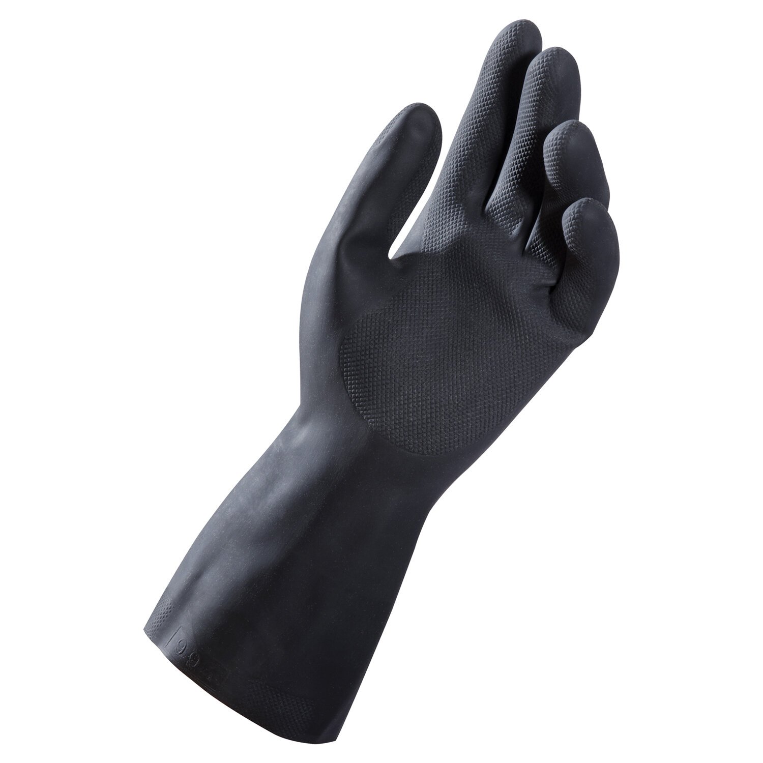 Перчатки кислотозащитные, из натурального латекса с хлопковым напылением внутри. Стойкость к растворам кислот и щелочей, а также кетонов, солей, спиртов и моющих средств. Прекрасное сочетание удобства и защиты от химических веществ для длительной носки.