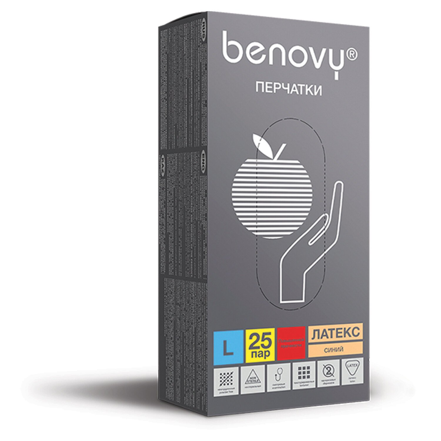 Перчатки латексные смотровые 25 пар (50 шт.), размер L (большой), синие, BENOVY High Risk, -