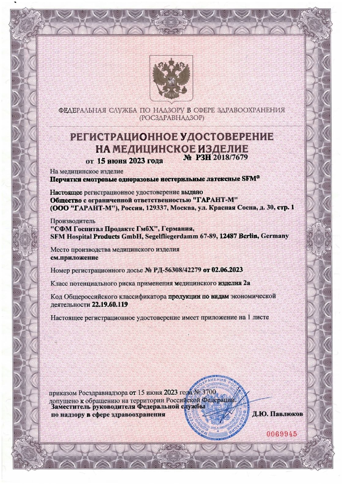 Перчатки латексные SFM Grip-Surface созданы для дополнительной защиты пациентов и врачей во время медицинского осмотра. Производство SFM Hospital Products GmbH, Германия.