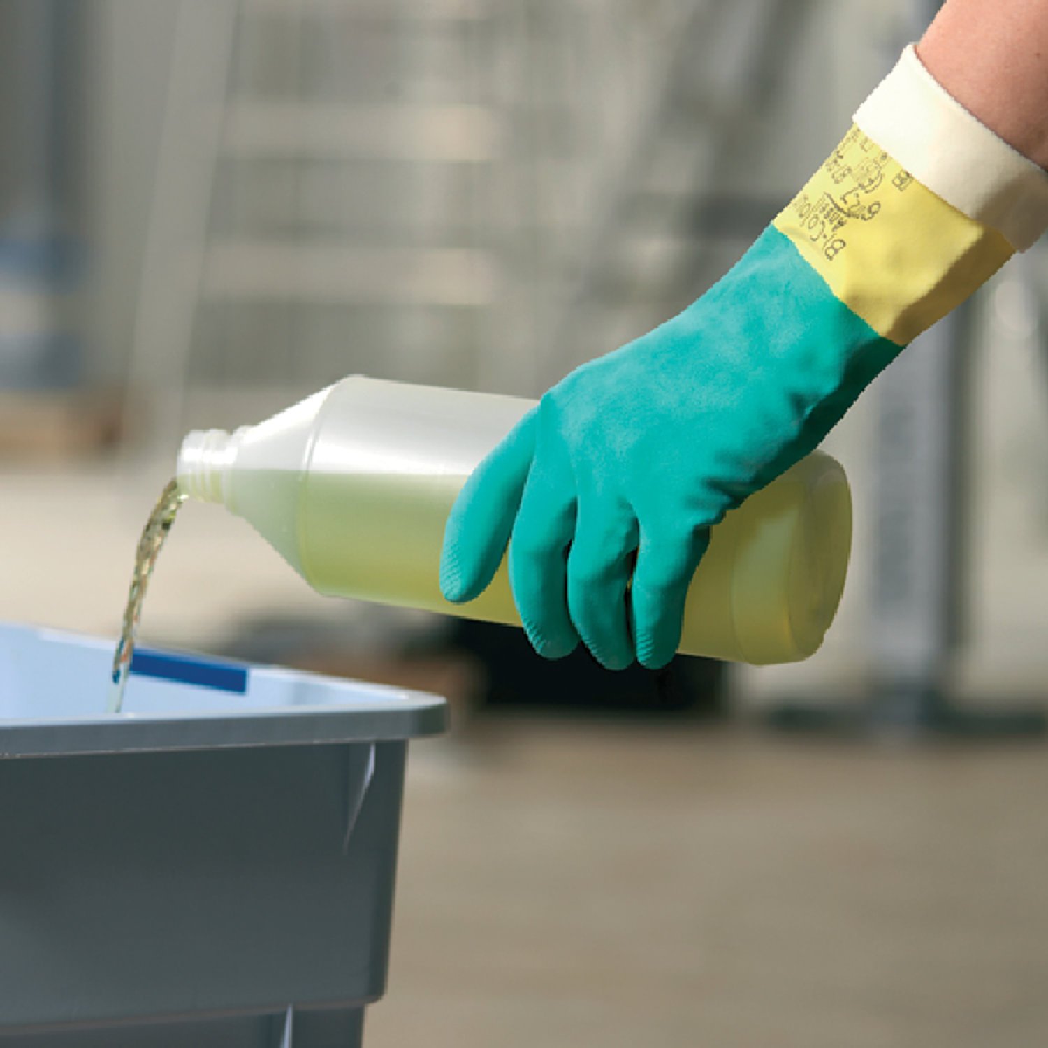 - сверхпрочные трехслойные латексно-неопреновые перчатки подходят для интенсивной работы с использованием агрессивных моющих средств,