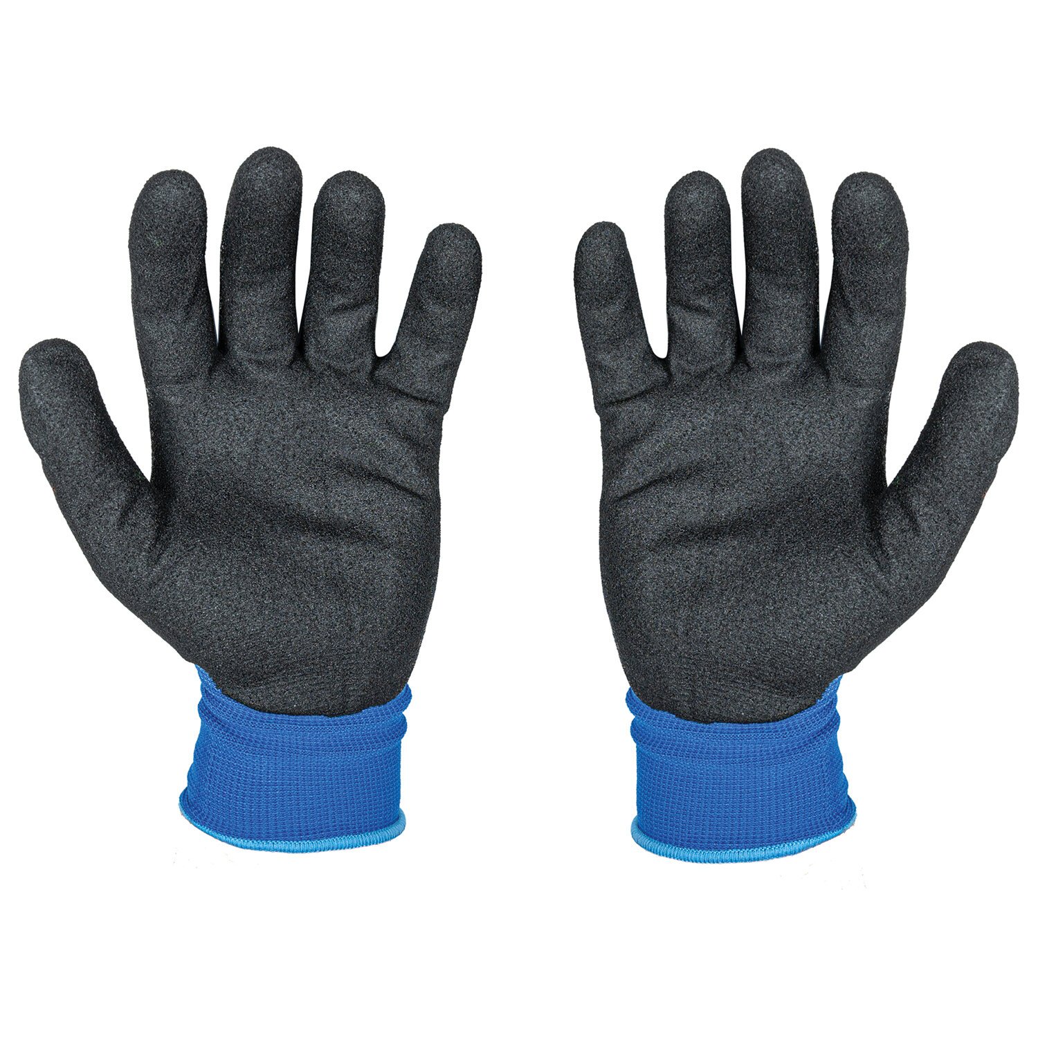 Бесшовная «дышащая» основа из нейлона с плотностью вязки 13 петель на дюйм, обеспечивает высокую чувствительность. Плотное покрытие из нитрила песочной структуры, обеспечивает хороший захват даже влажных и масляных поверхностей. Покрытие в рабочей зоне на ладони и пальцах устойчиво при работе с жирными, замасленными деталями, проверено на стойкость к нефтепродуктам. Удлиненная манжета с цветовой индикацией размера