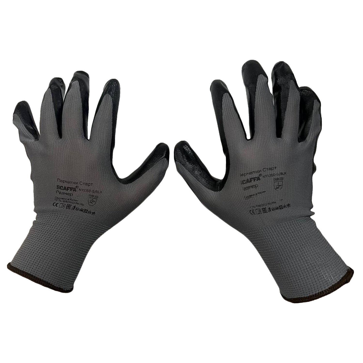 Перчатки нейлоновые SCAFFA Старт, нитриловое покрытие (облив), р. 10, XL, шк 1047, 00-01018560
