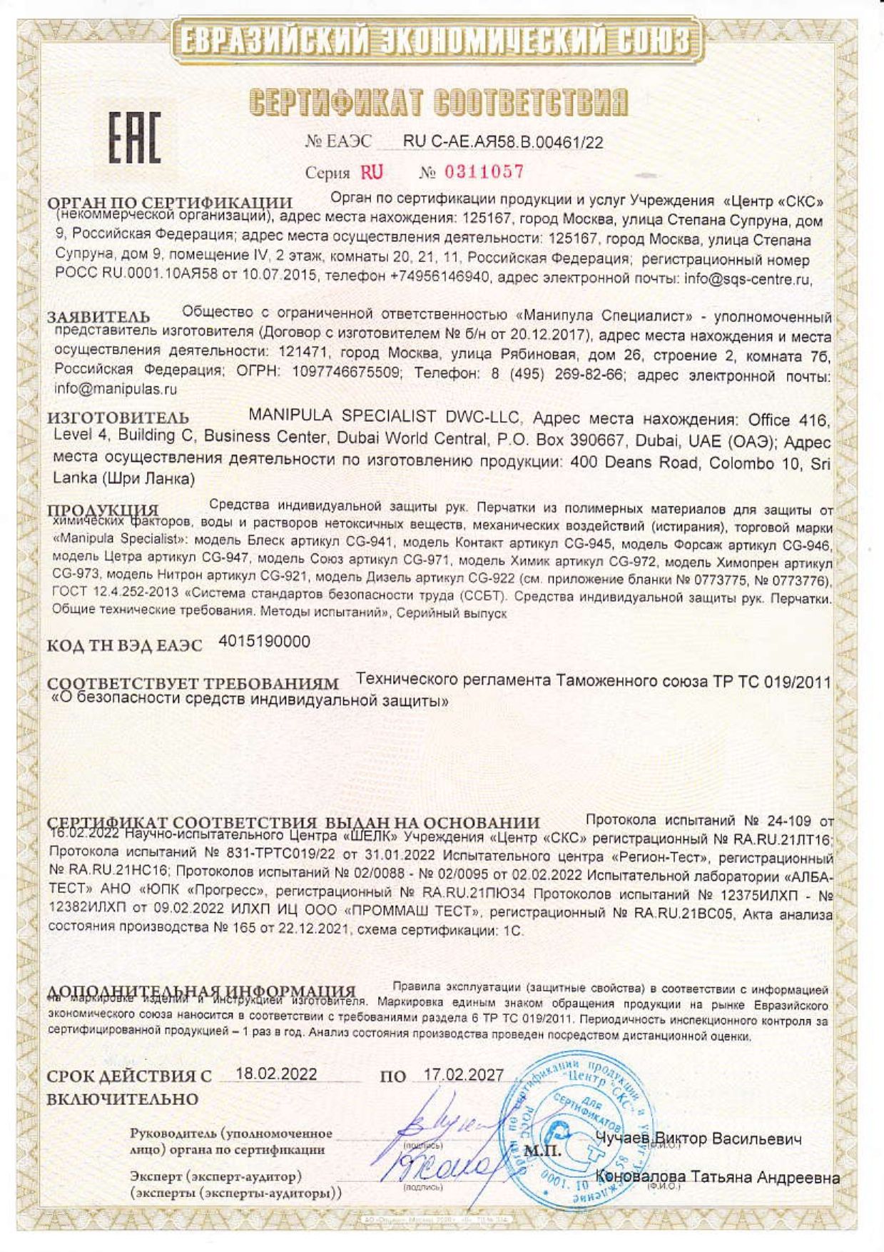 | Соответствует требованиям ГОСТа | ГОСТ 12.4.252-2013 |