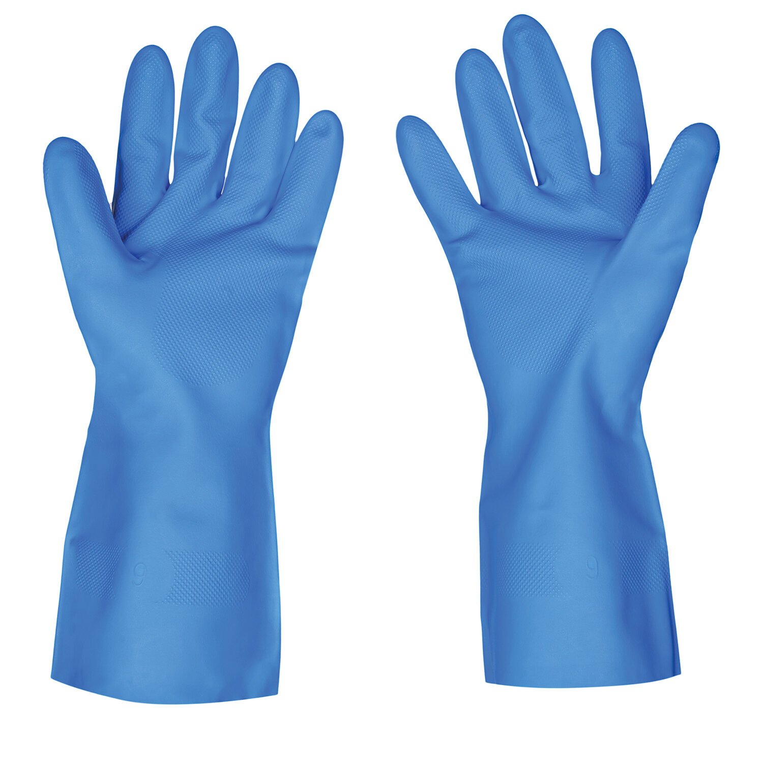 Перчатки МНОГОРАЗОВЫЕ резиновые VILEDA многоцелевые, хлопчатобумажное напыление, ПРОЧНЫЕ, размер L (большой), синий, вес 66 г, 100754