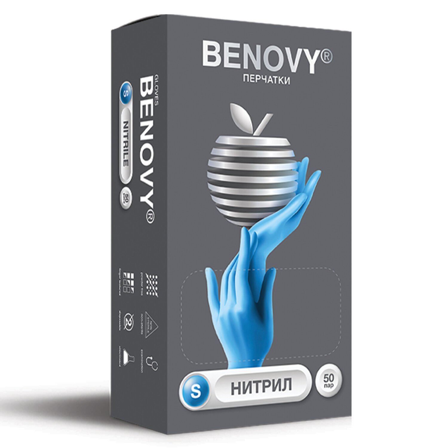 Перчатки нитриловые смотровые 50 пар (100 шт.), размер S (малый), BENOVY Nitrile Chlorinated