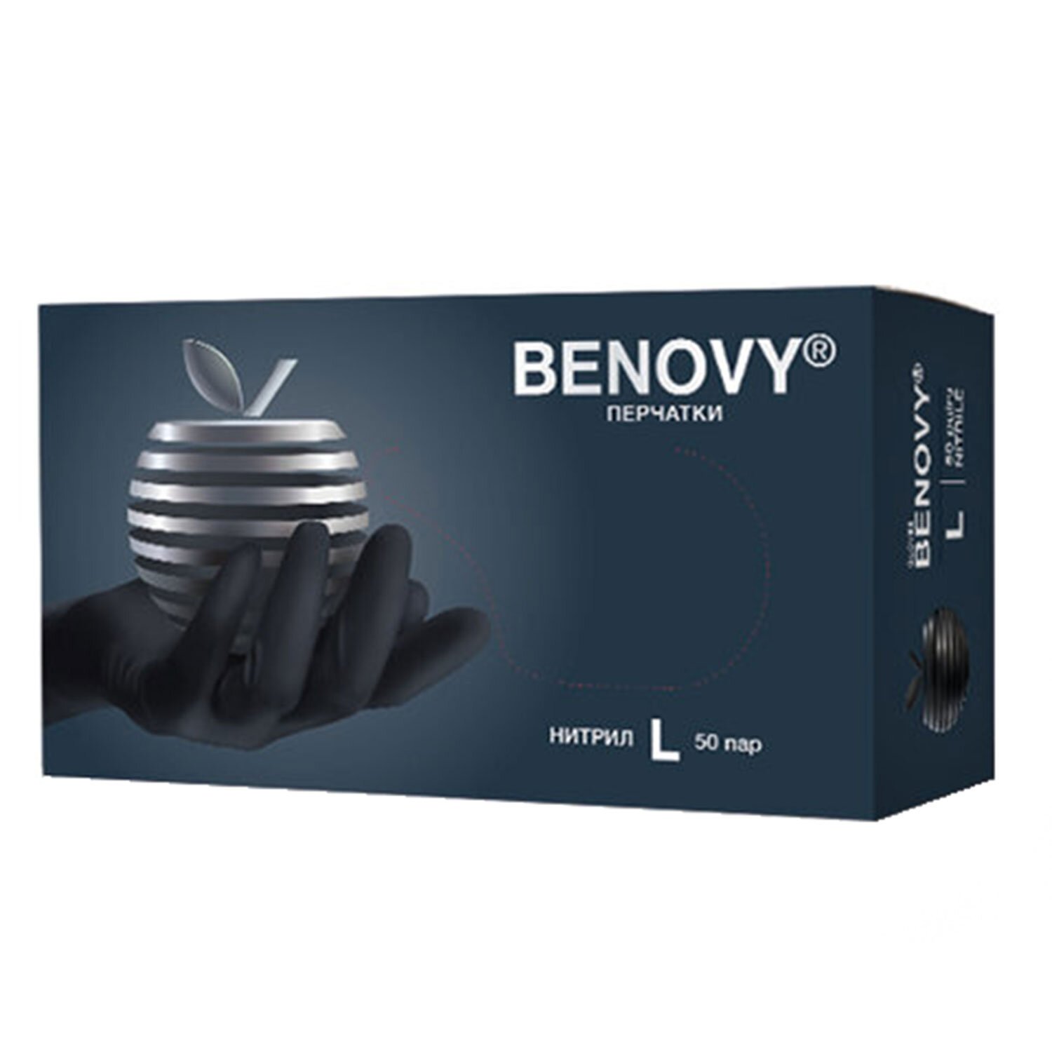 Перчатки нитриловые смотровые 50 пар (100шт) размер L черные BENOVY Nitrile Chlorinated,ЧЗ,М, шк2247