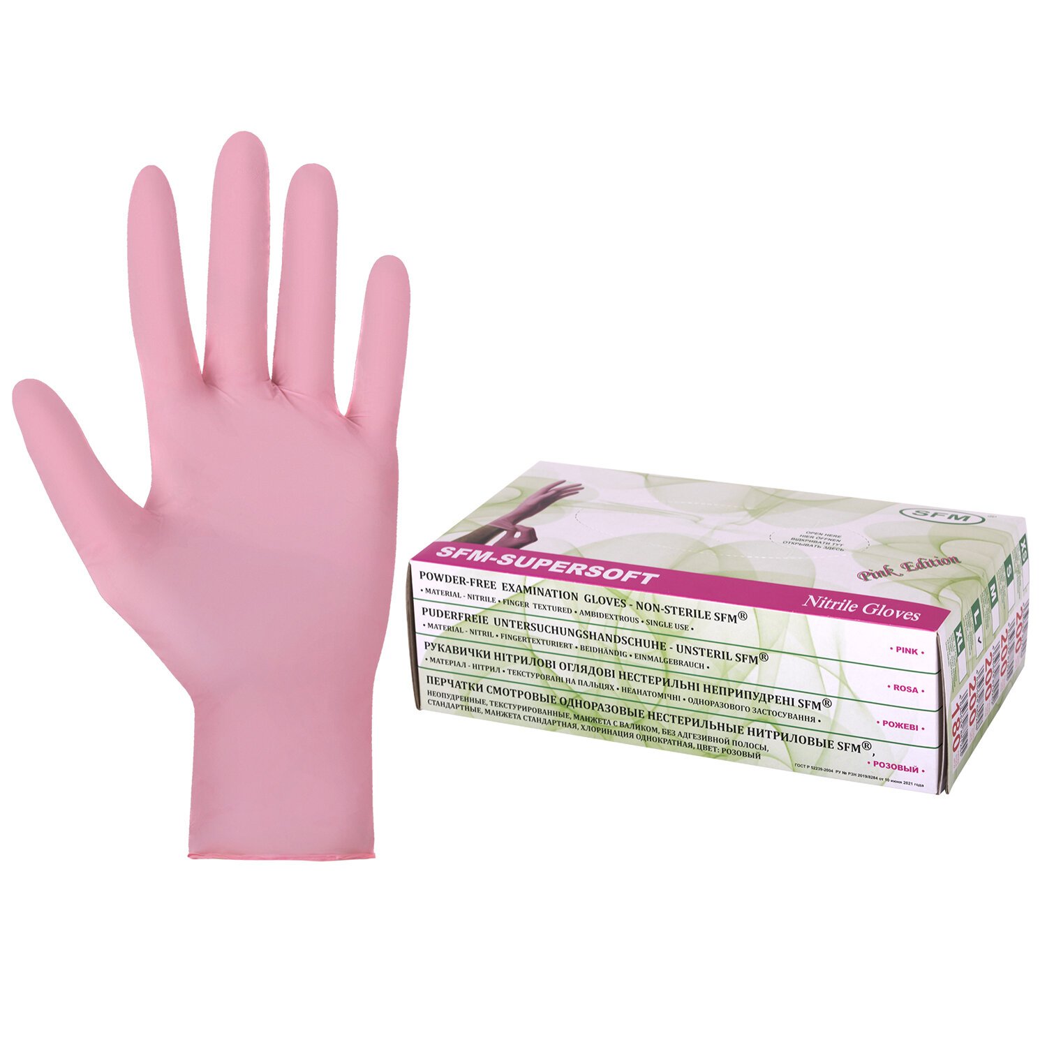 Перчатки нитриловые смотровые SFM Supersoft PINK, 100 пар (200 шт.), размер L (большой), розовые