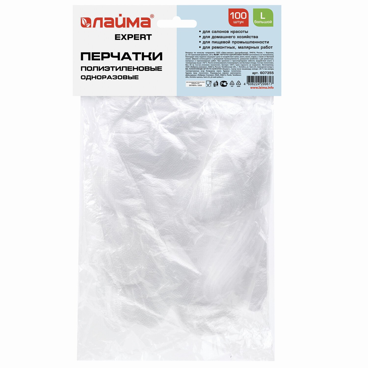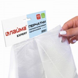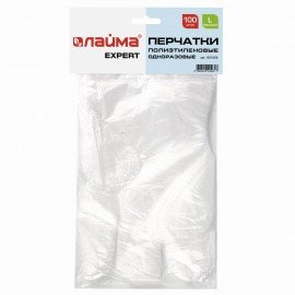 Перчатки полиэтиленовые одноразовые, ОТРЫВНЫЕ, КОМПЛЕКТ 50 пар (100 шт.) размер L, LAIMA, 607355