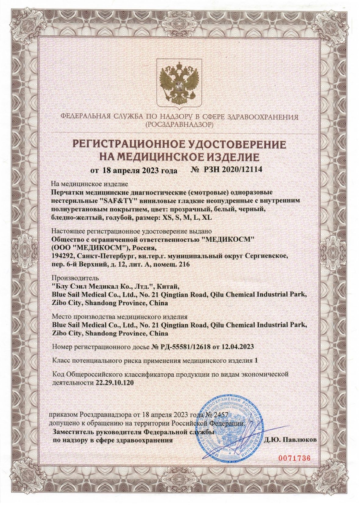 Перчатки SAF&TY предназначены для одноразового использования. Они создают защитный барьер на руках медицинского работника во время осмотра/лечения пациента.