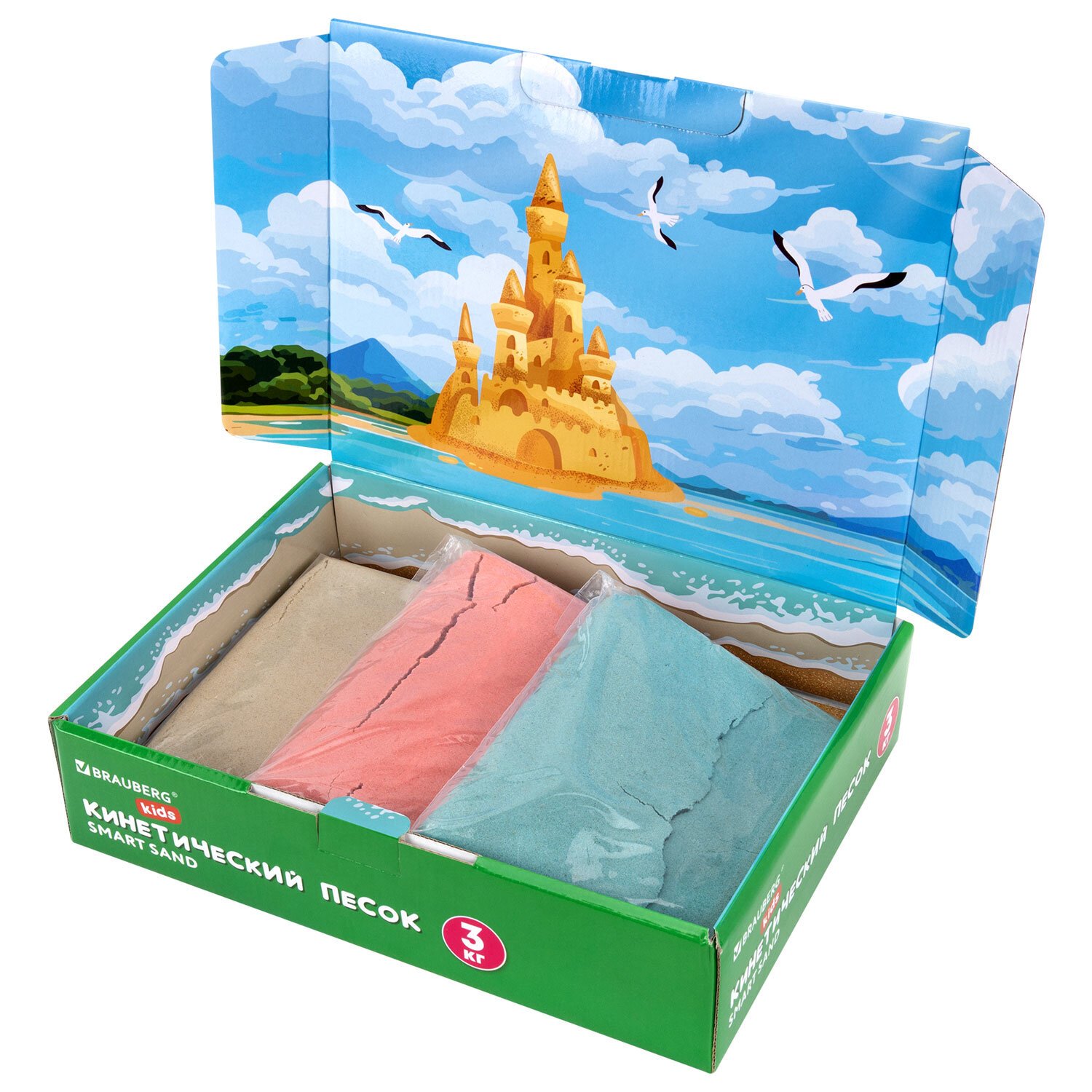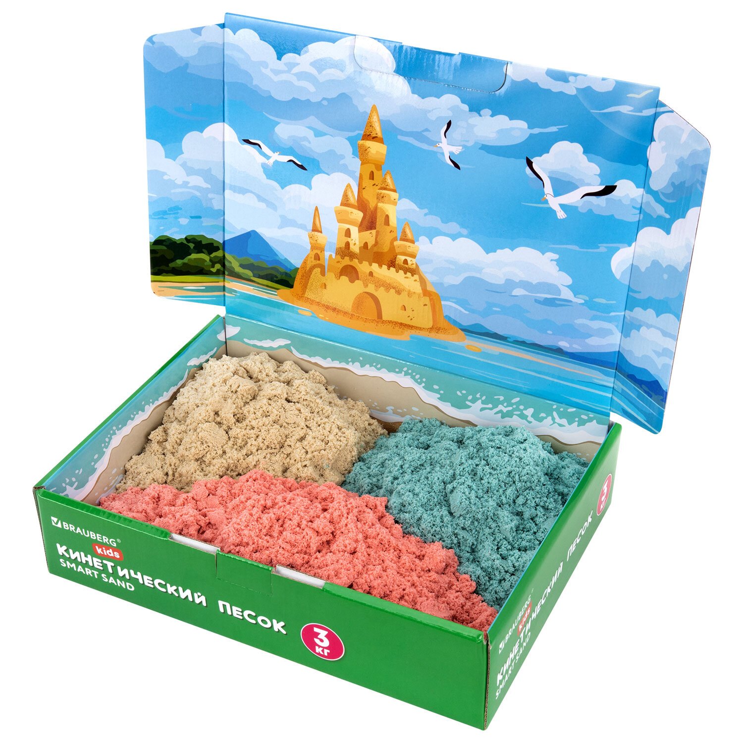 Песок для лепки кинетический, 3 цвета, 3000 г, коробка-песочница, ПИФАГОР, 666009