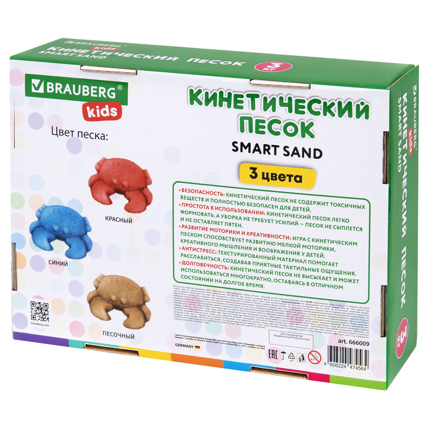 Песок для лепки кинетический, 3 цвета, 5000г, пакет, BRAUBERG KIDS, код 1С, 666007