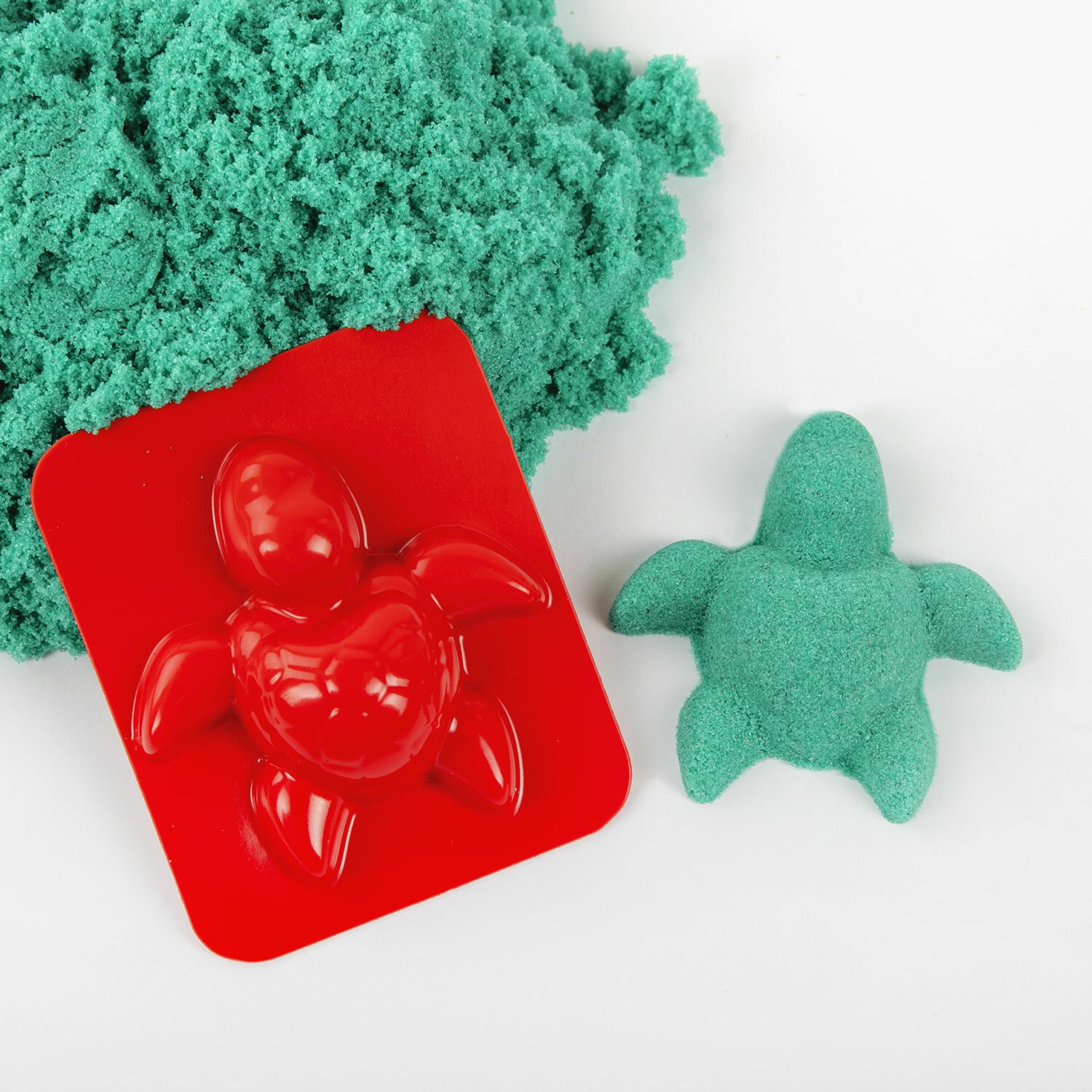 Состав набора: кинетический песок изумрудного цвета и 2 формочки для лепки. Вес набора - 500 г.