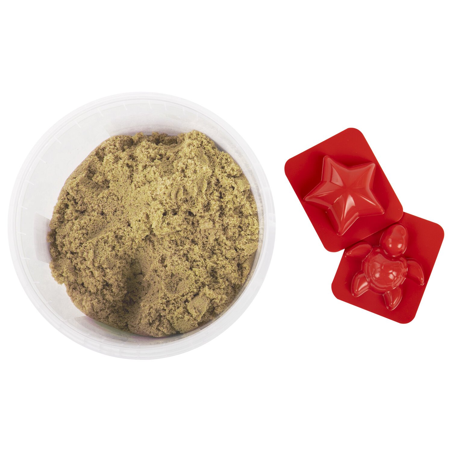 Состав набора: кинетический песок песочного цвета 500 г и 2 формочки для лепки.