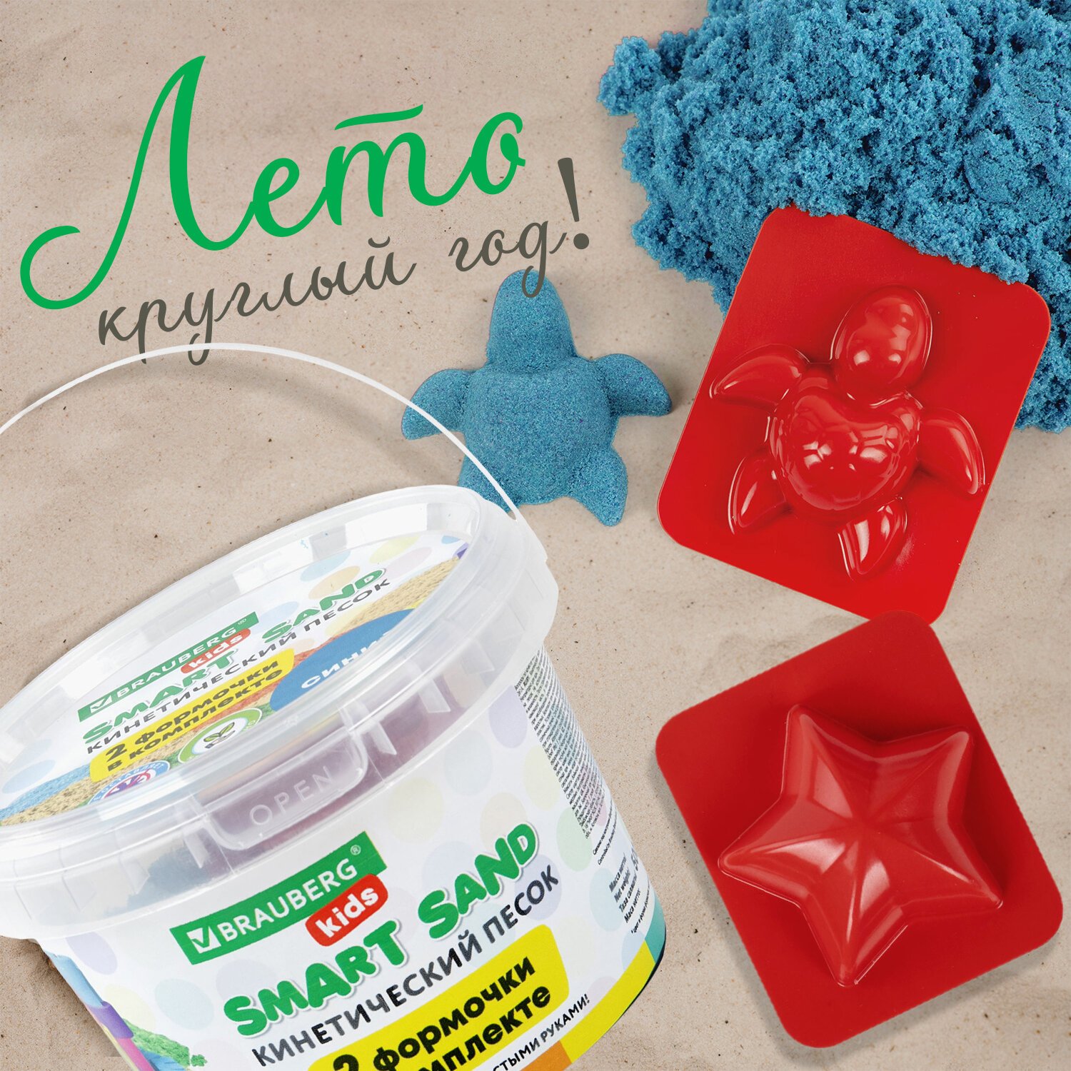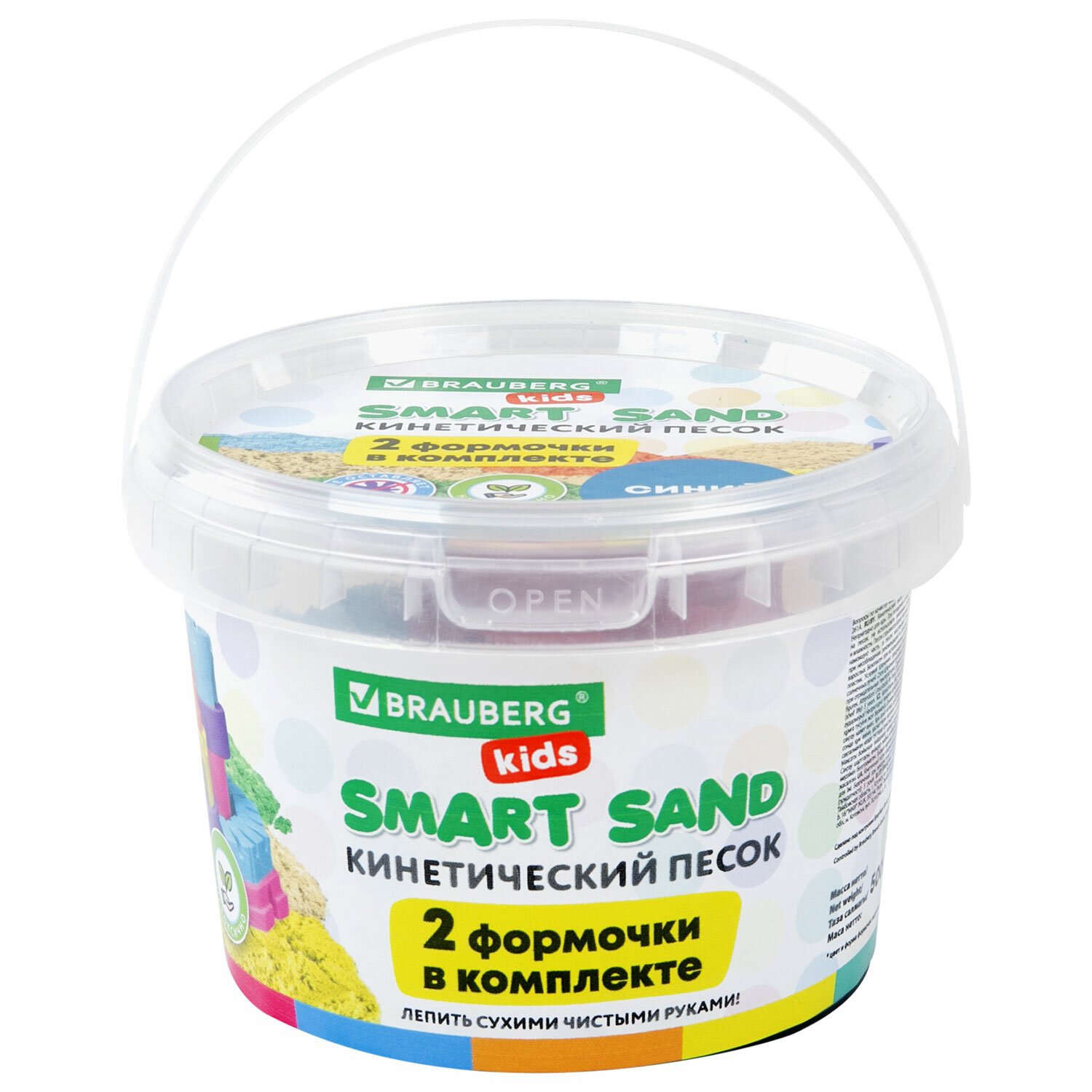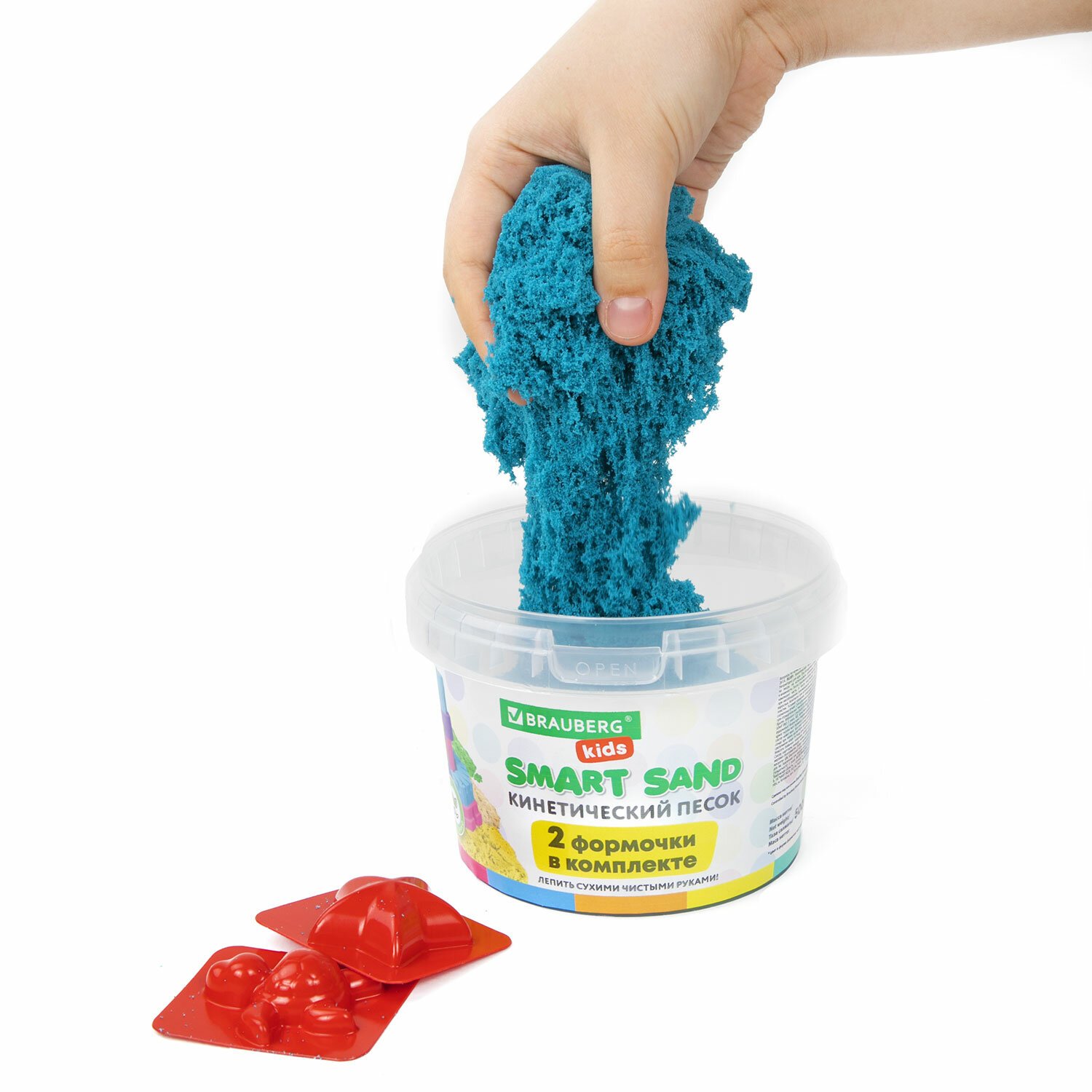 Песок для лепки кинетический BRAUBERG KIDS, синий, 500 г, 2 формочки, ведерко, 665095