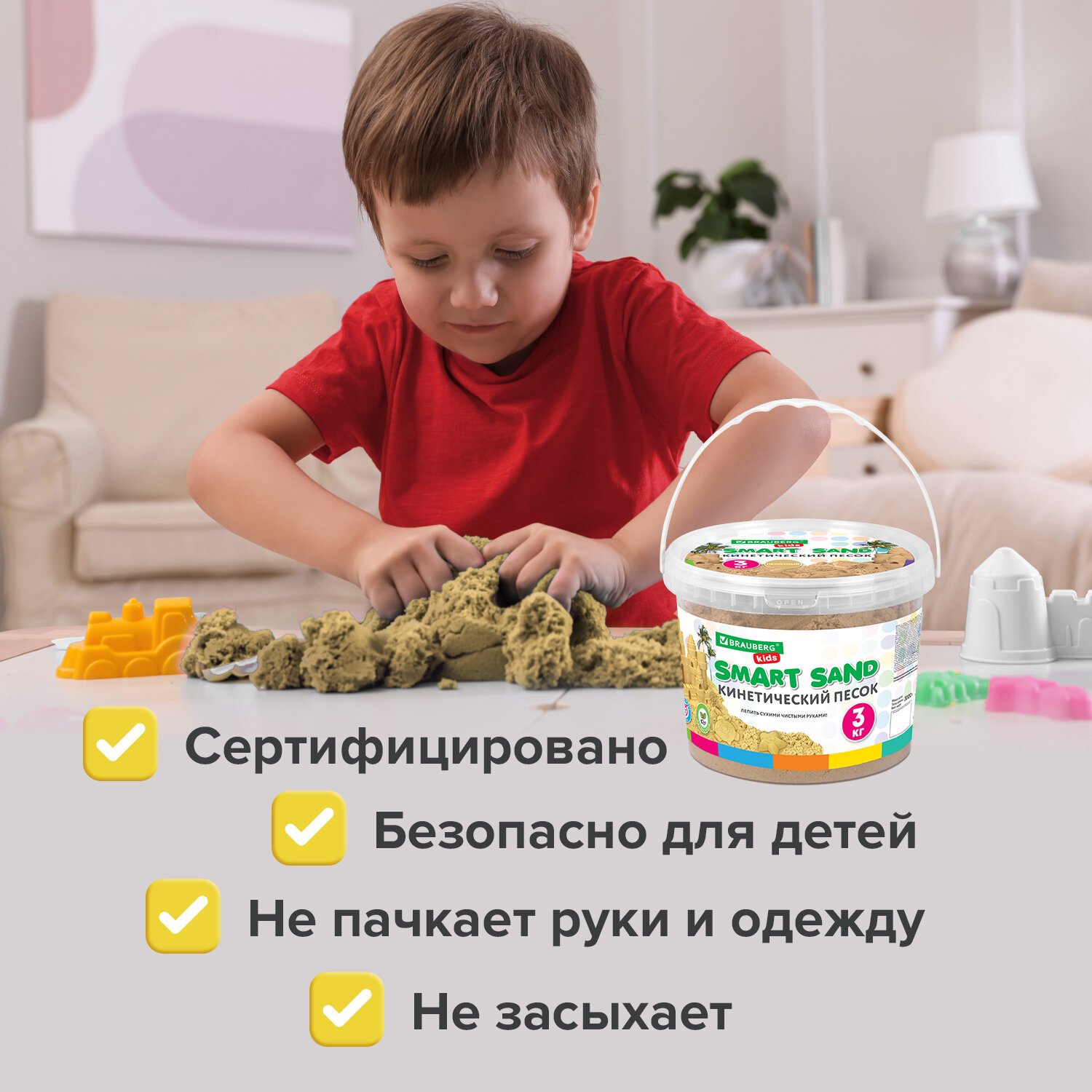 Песок для лепки кинетический песочный 3000 г, 3 формочки, лопатка, грабли, ведро, BRAUBERG KIDS, 665480