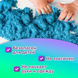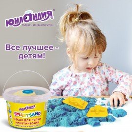 Песок для лепки кинетический ЮНЛАНДИЯ, синий, 500 г, 2 формочки, ведерко, 104996
