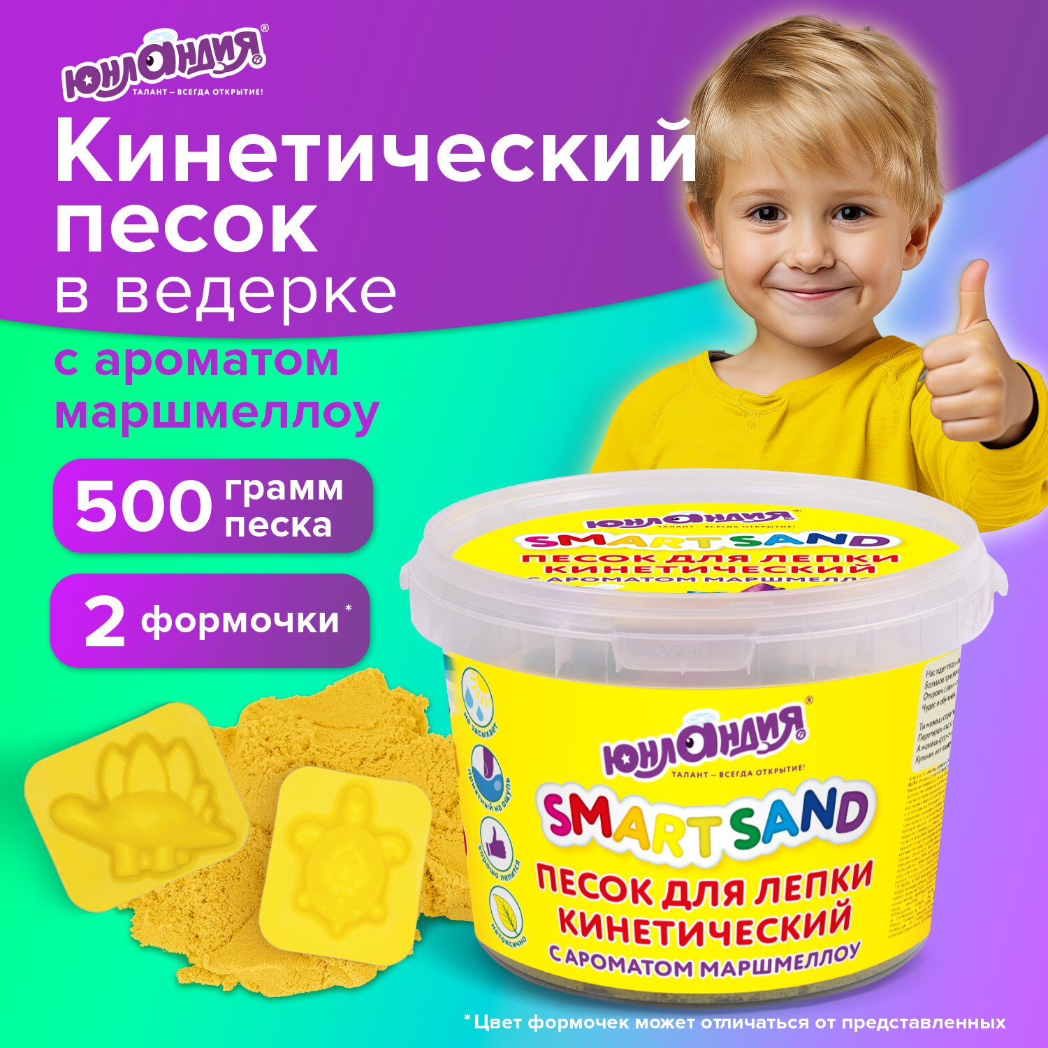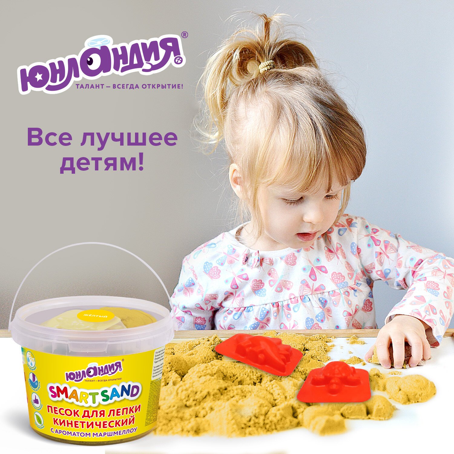 Песок для лепки кинетический ЮНЛАНДИЯ, желтый, 500 г, 2 формочки, ведерко, 104995