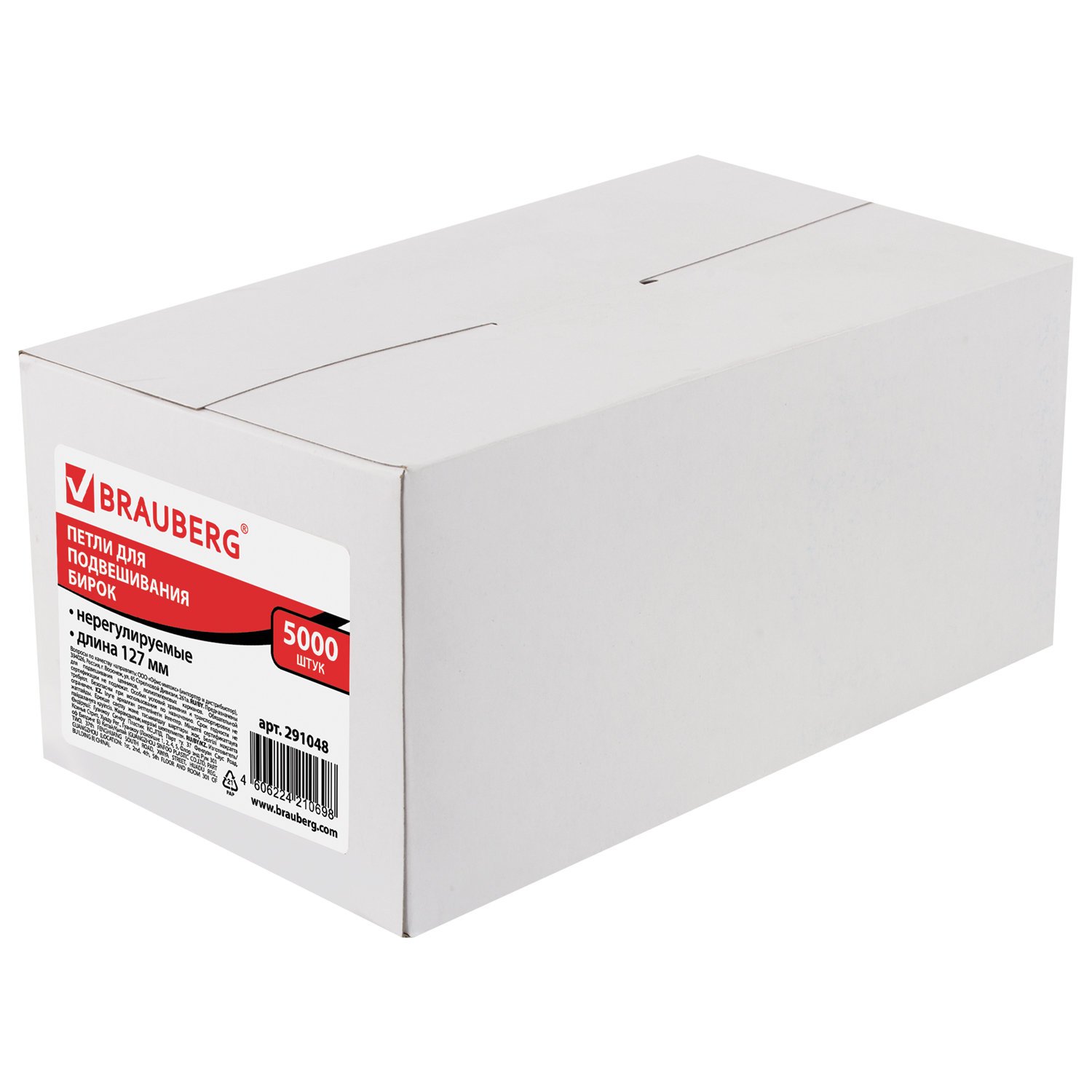 Петли для подвешивания бирок, нерегулируемые, 127 мм, комплект 5000 шт., BRAUBERG, 291048