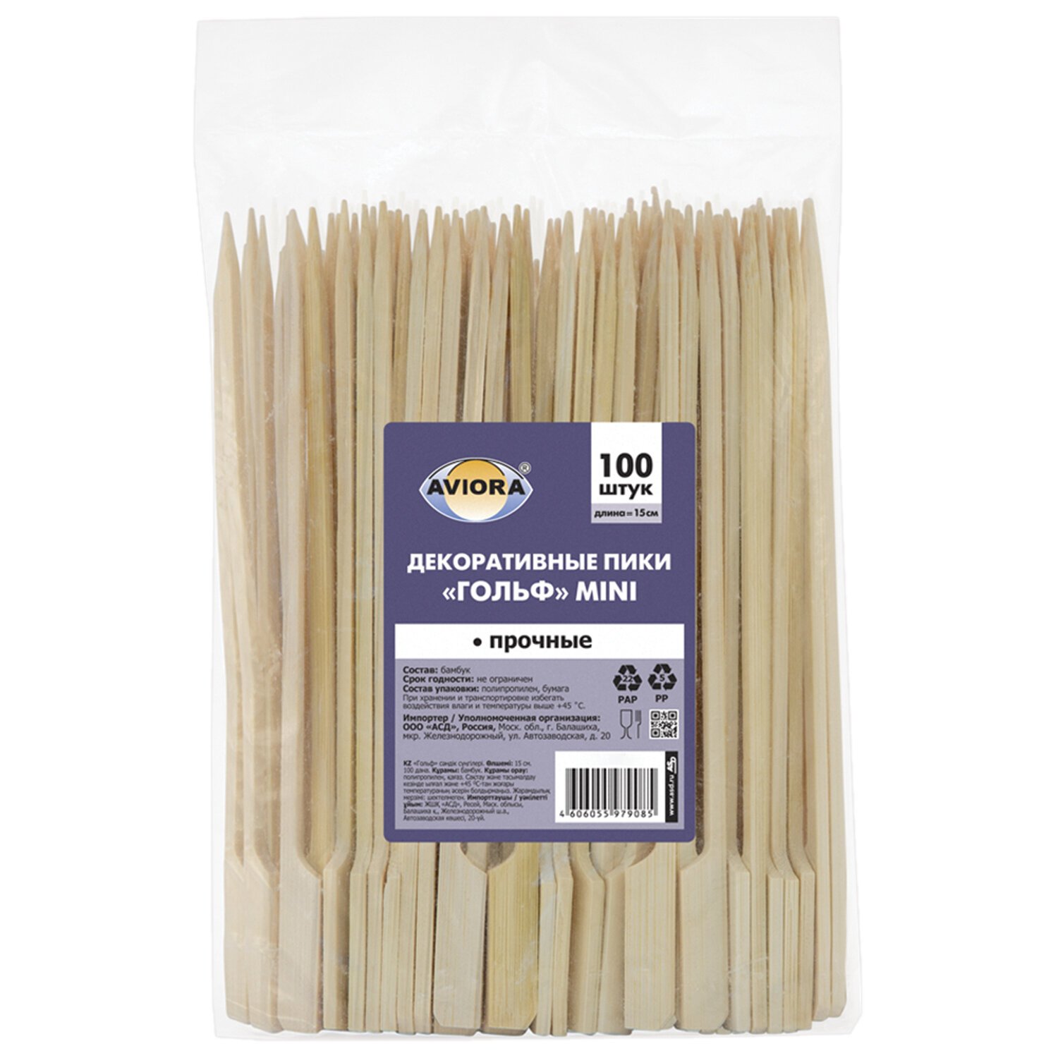 Пики для канапе бамбуковые 15 см, КОМПЛЕКТ 100 шт., AVIORA, 401-904