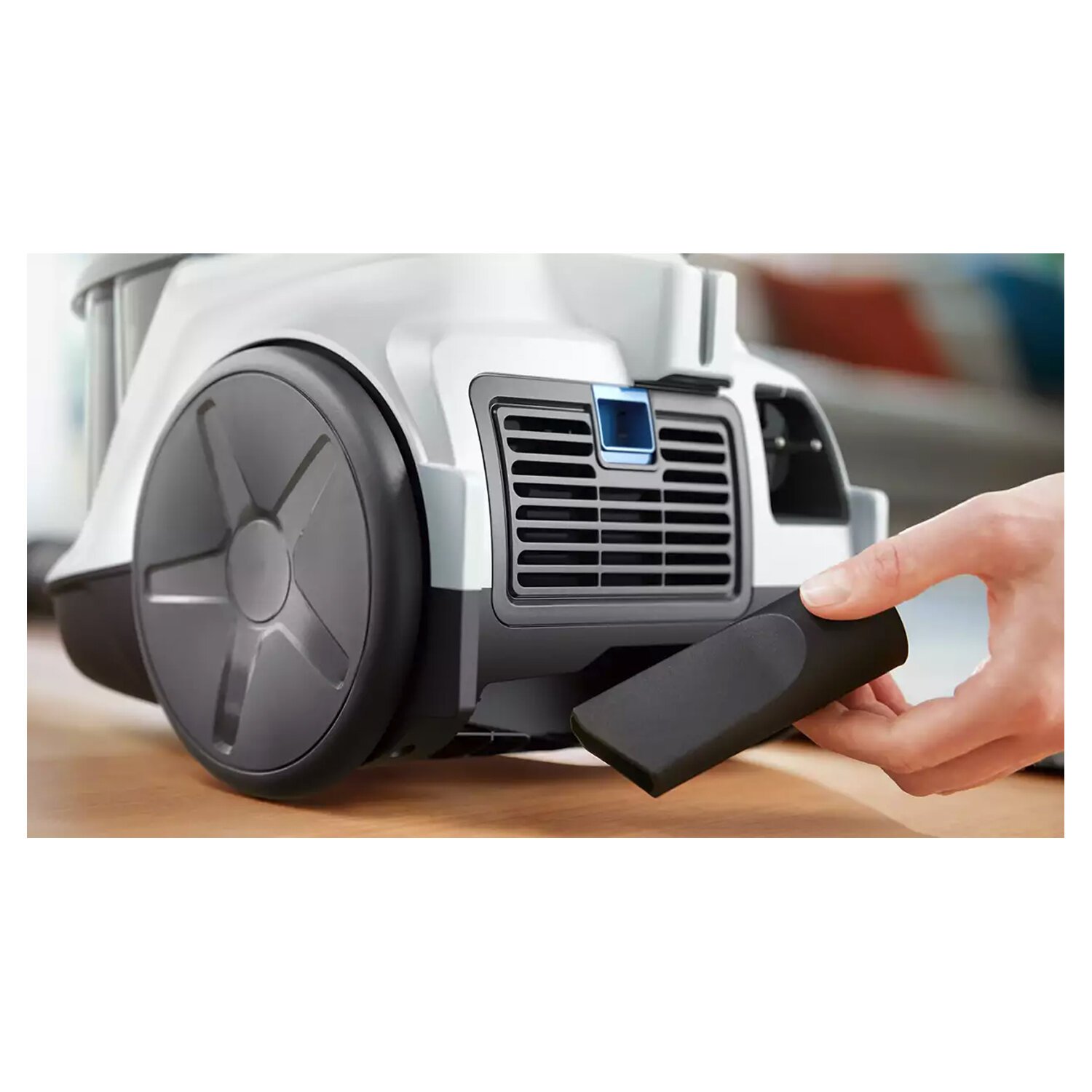 Пылесос оснащен контейнером на 1,3 л. Конструкция пылесборника предназначена для гигиеничной очистки одной рукой – теперь вы сможете забыть о клубах пыли при его опустошении.