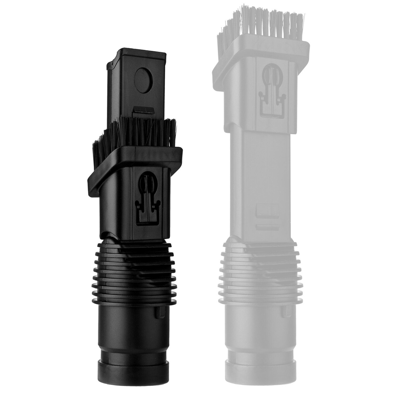 Модель с цельной трубкой хранится в вертикальном положении. В комплекте предусмотрены щетка для очищения пола и трубка для удаления загрязнений в труднодоступных местах. Рукоятка удобной формы не выскальзывает при эксплуатации. Сменные насадки используются для обработки труднодоступных мест, матрасов и мягкой мебели. За счет возможности вертикального расположения устройство не занимает много места при хранении.