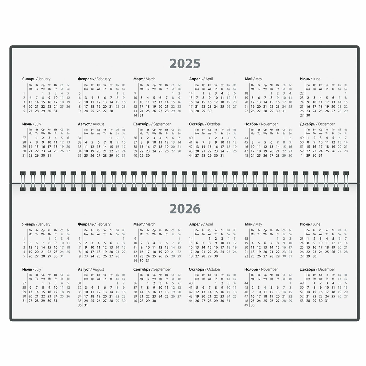 Внутренний блок содержит 64 листа офсетной бумаги белого цвета плотностью 65 г/м2. Обложка из мелованного картона обеспечивает долгий срок службы. Скрепление осуществляется с помощью евроспирали. Размер изделия – 285х112 мм.