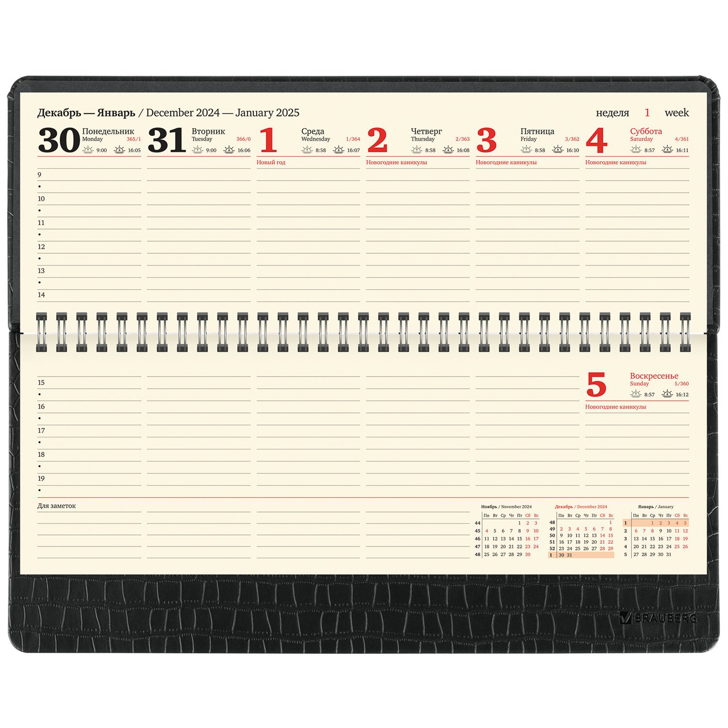 Планинг датированный 2025 305х140 мм BRAUBERG "Comodo", под кожу, черный, 115692