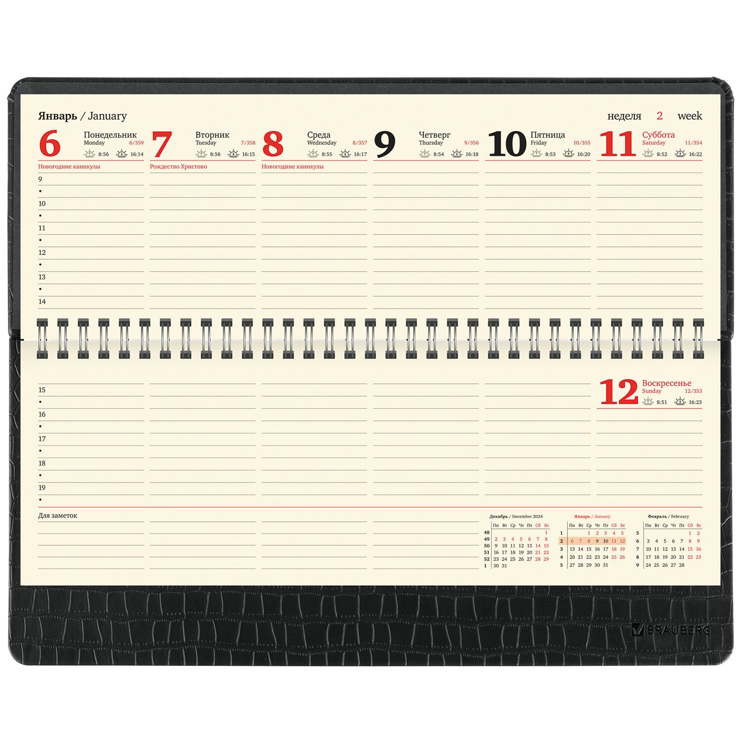 Еженедельник недатированный МАЛЫЙ ФОРМАТ 95х155 мм, А6, BRAUBERG "Iguana", под кожу, 64 л., черный, 114480