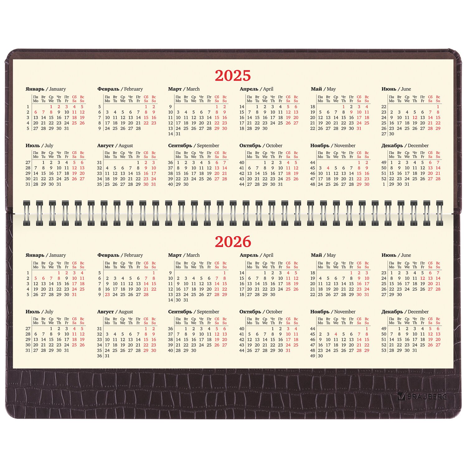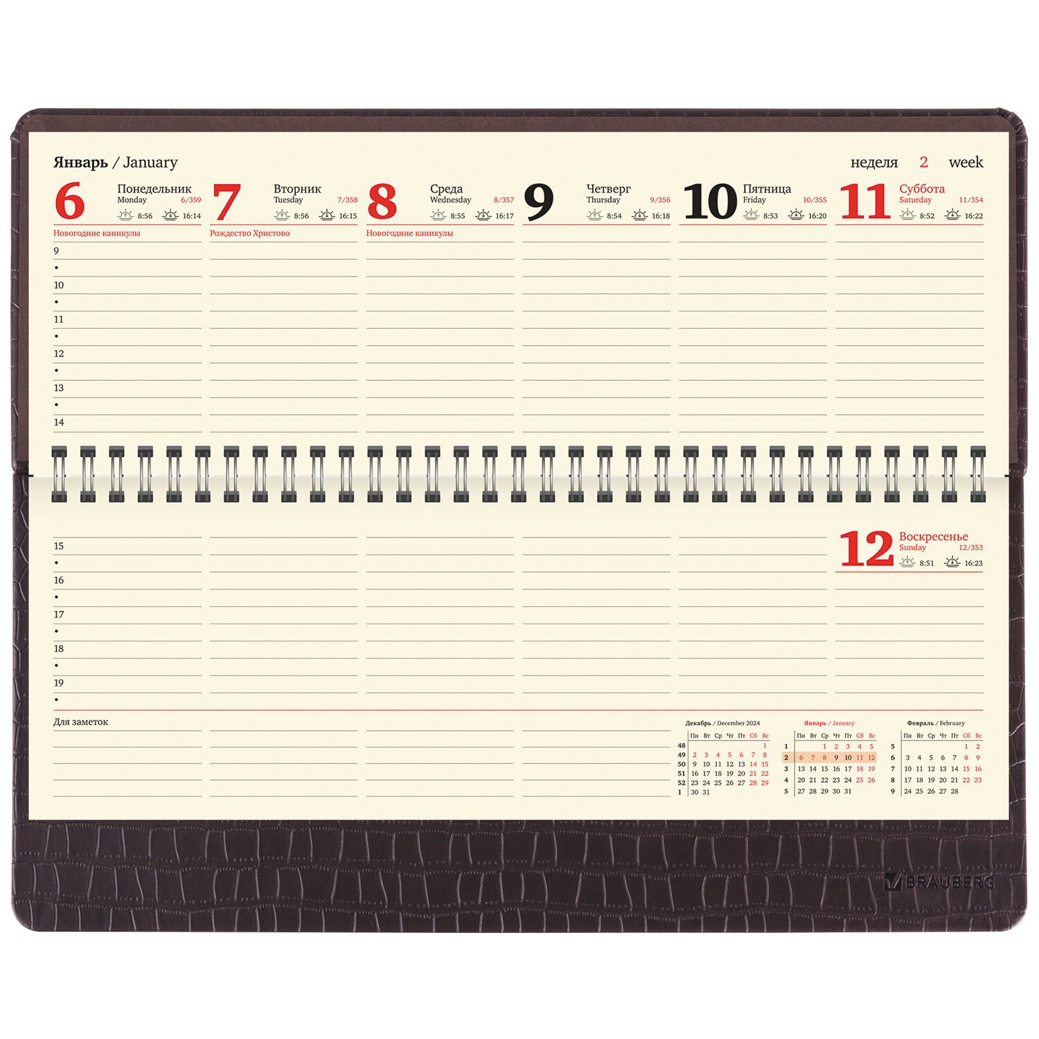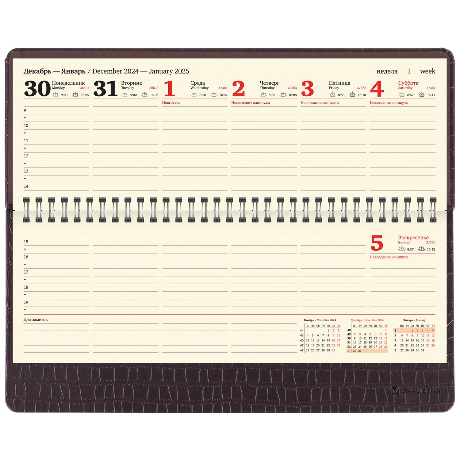 Планинг датированный 2025 305х140 мм BRAUBERG "Comodo", под кожу, темно-коричневый, 115691