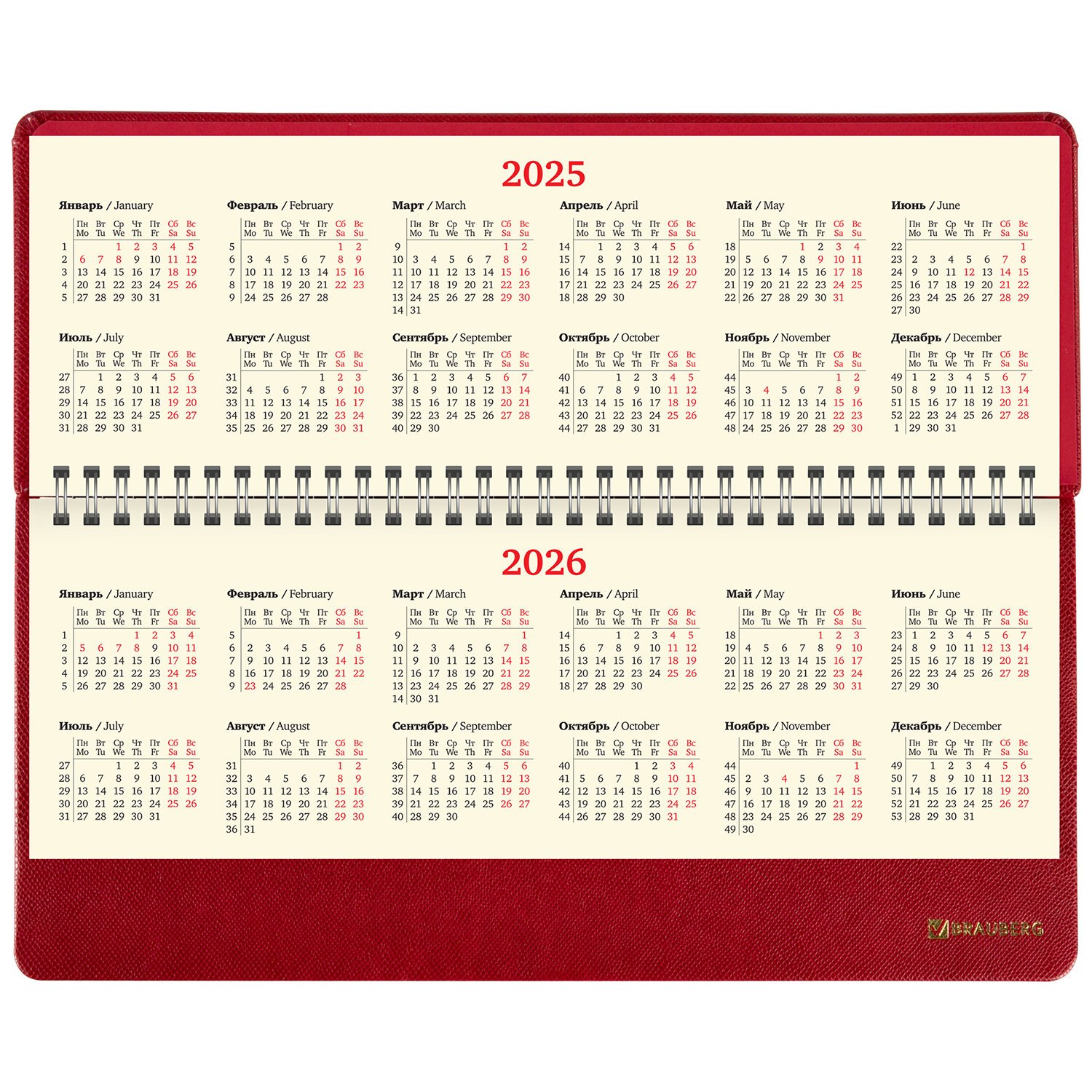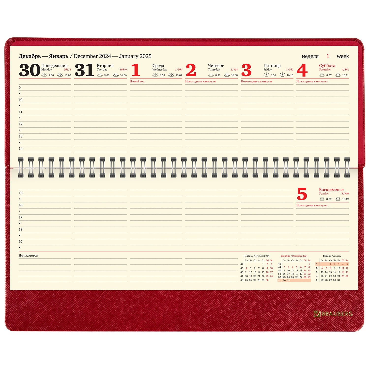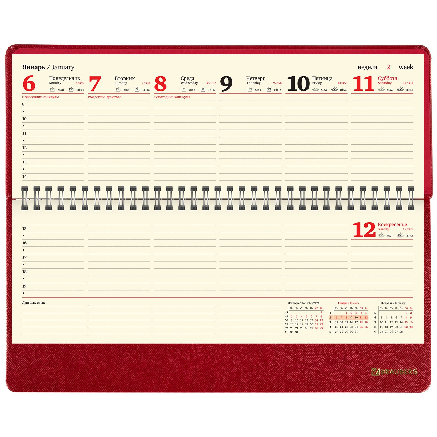 Планинг датированный 2025 305х140 мм BRAUBERG "Iguana", под кожу, красный, 115694