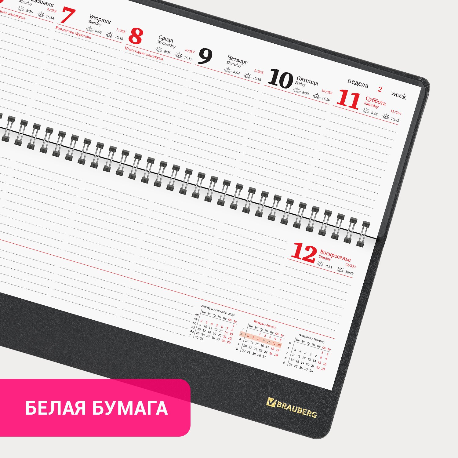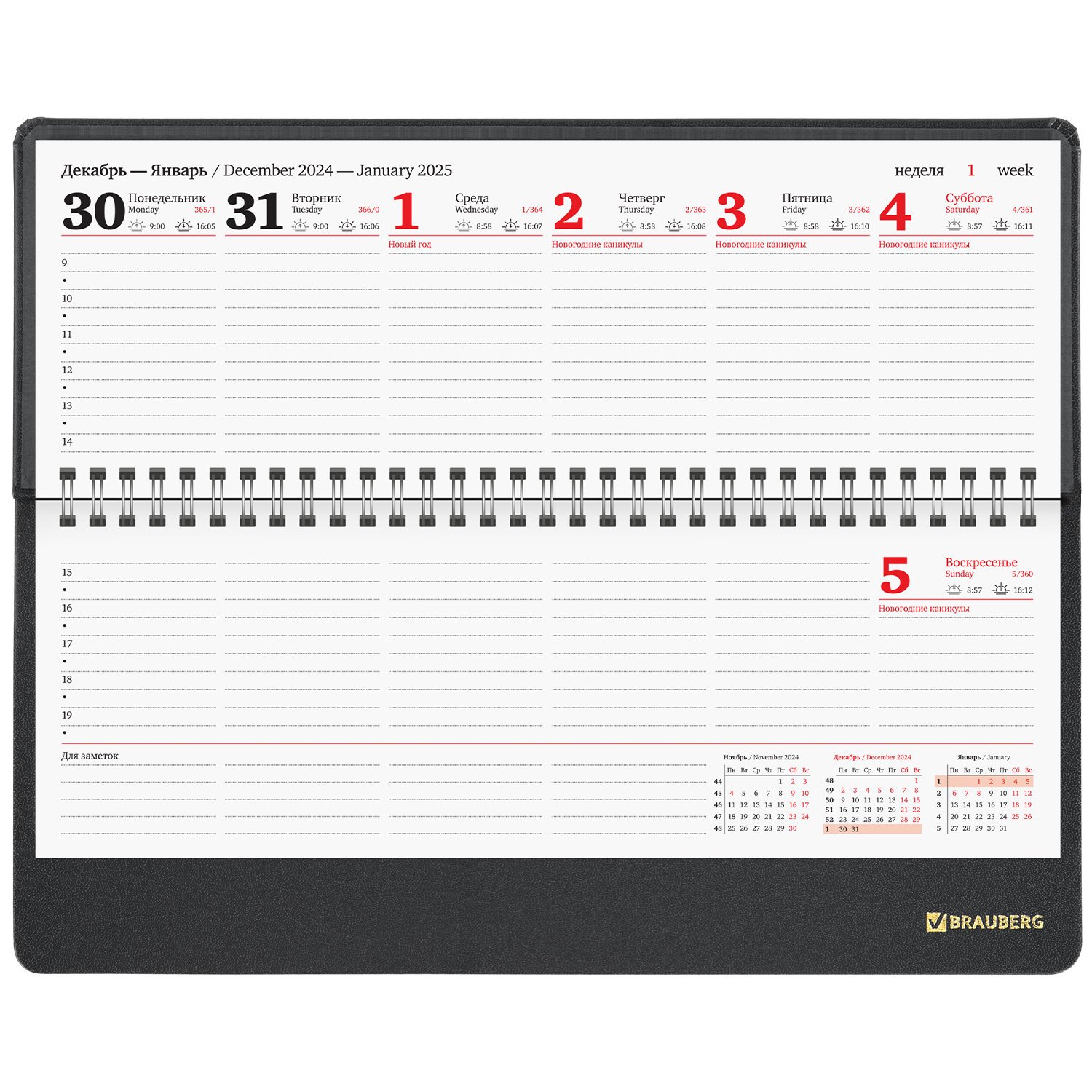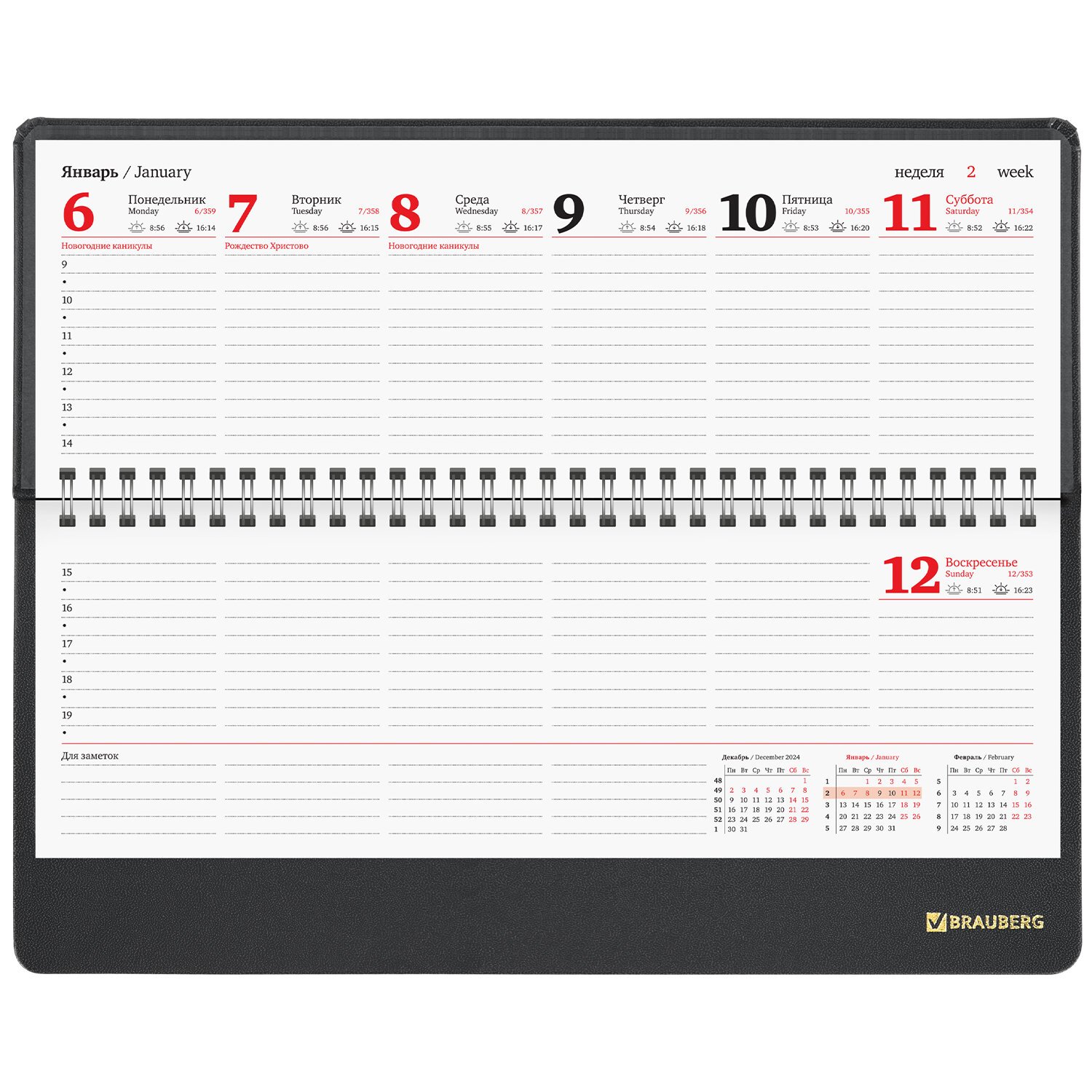 Планинг датированный 2025 305х140 мм BRAUBERG "Select", под кожу, черный, 115701