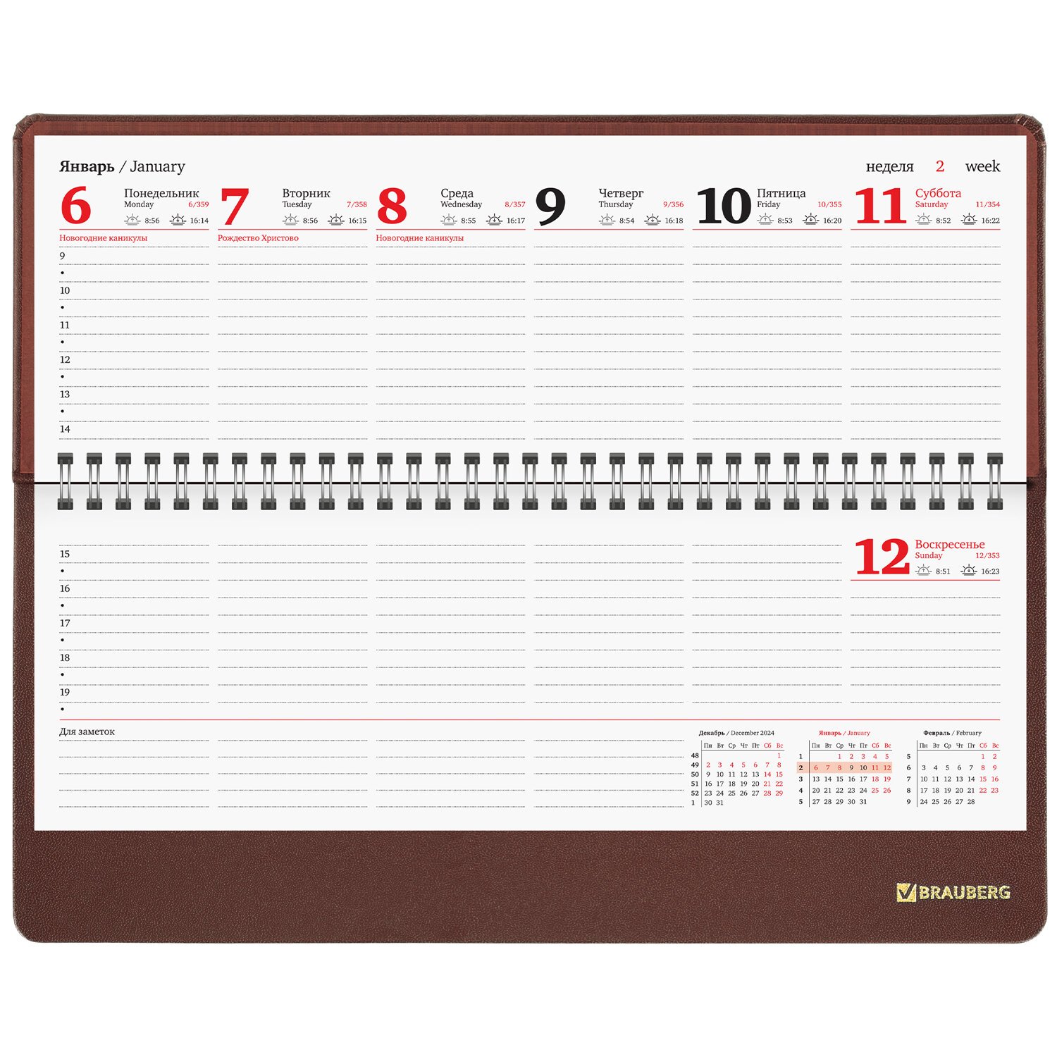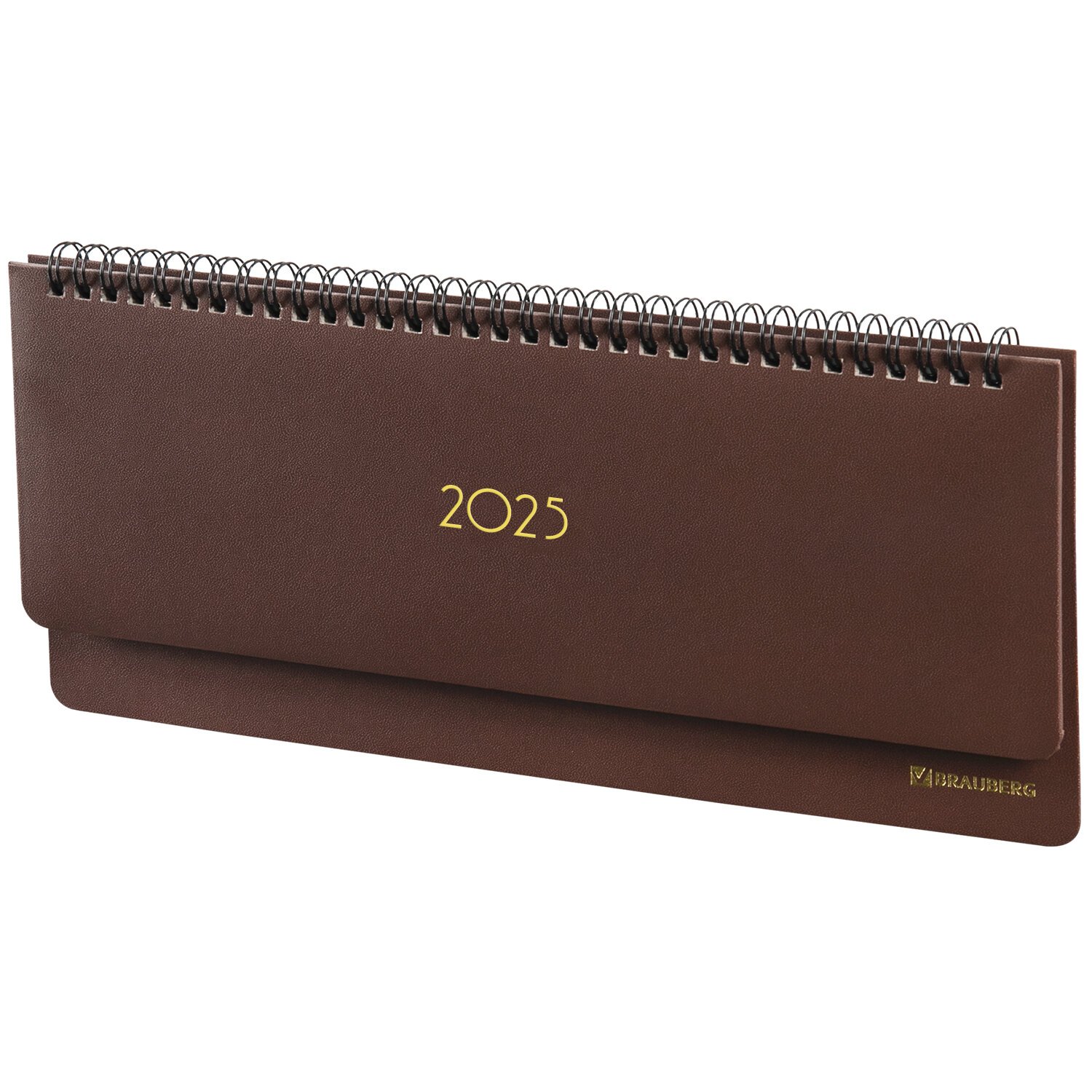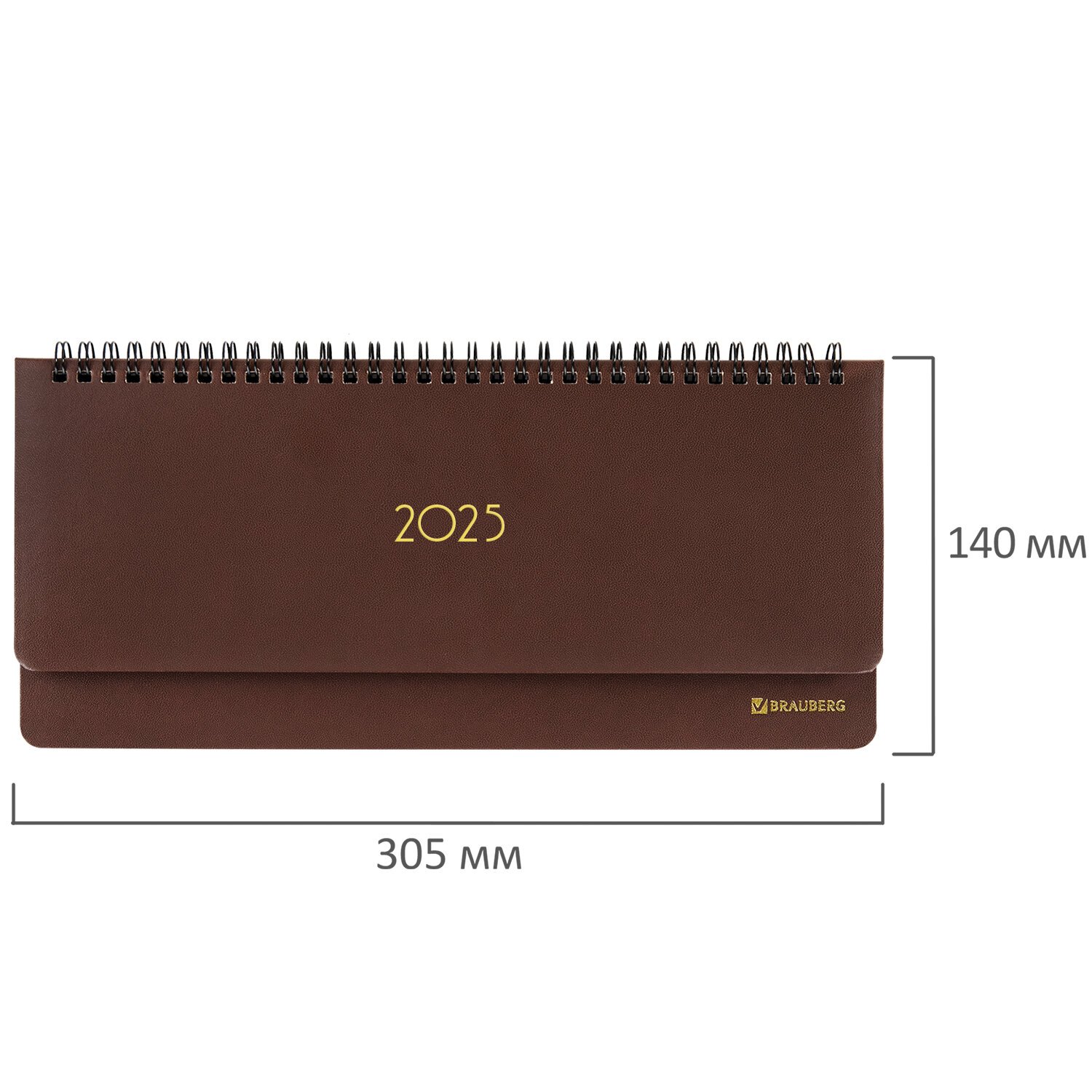 Планинг датированный 2025 305х140 мм BRAUBERG "Select", под кожу, коричневый, 115702
