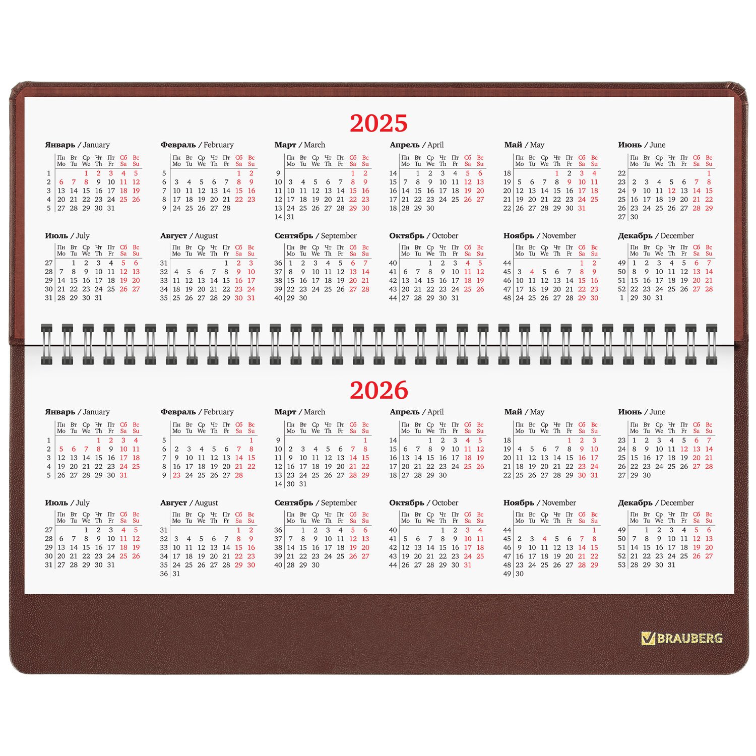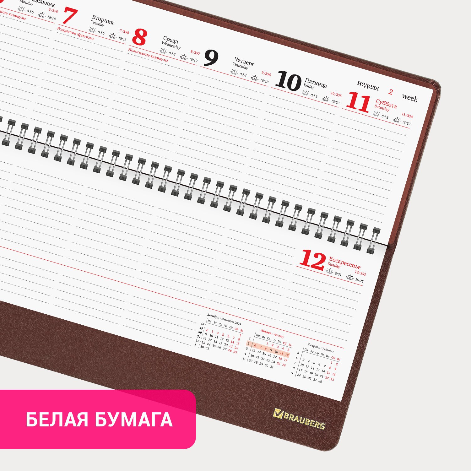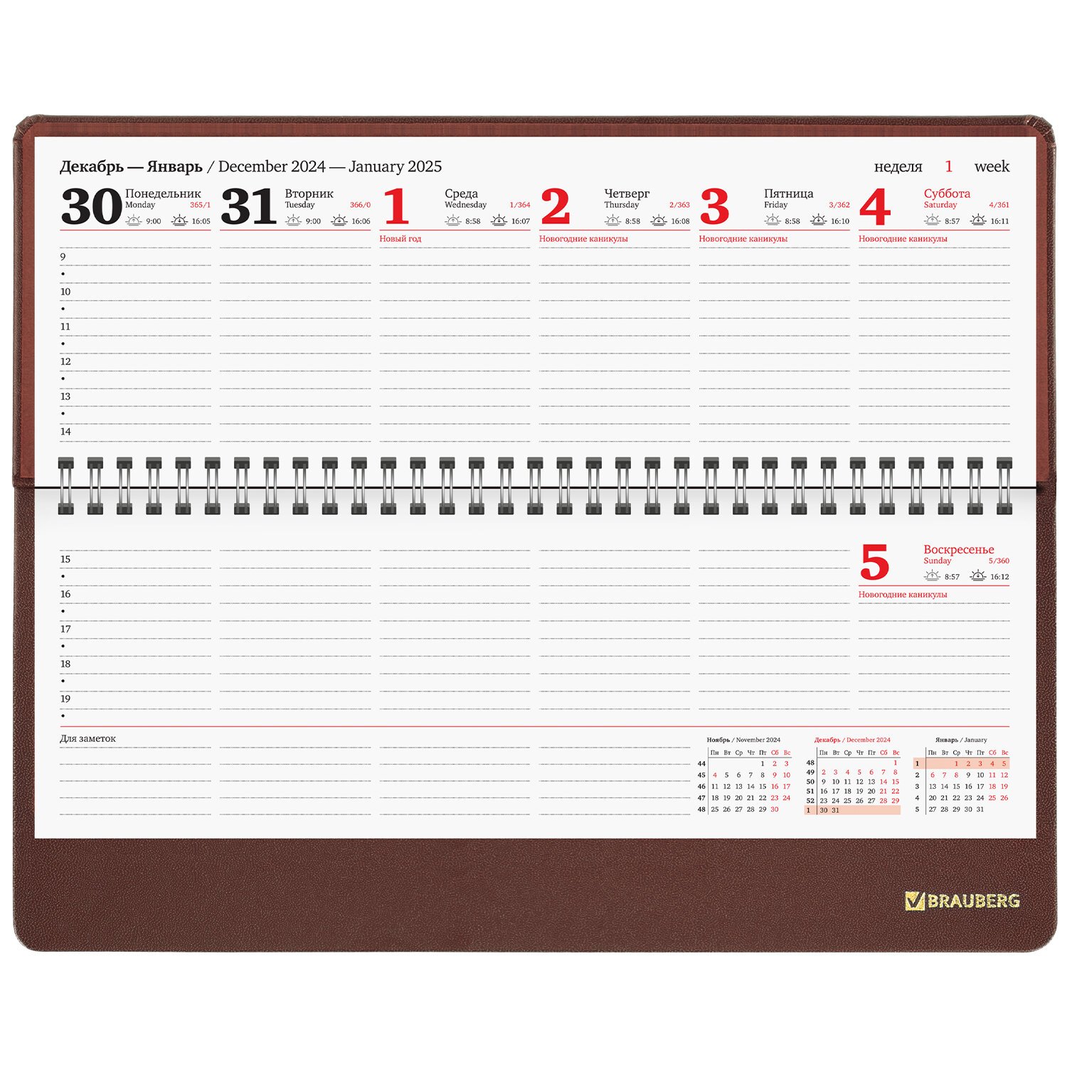 Планинг датированный 2025 305х140 мм BRAUBERG "Select", под кожу, коричневый, 115702