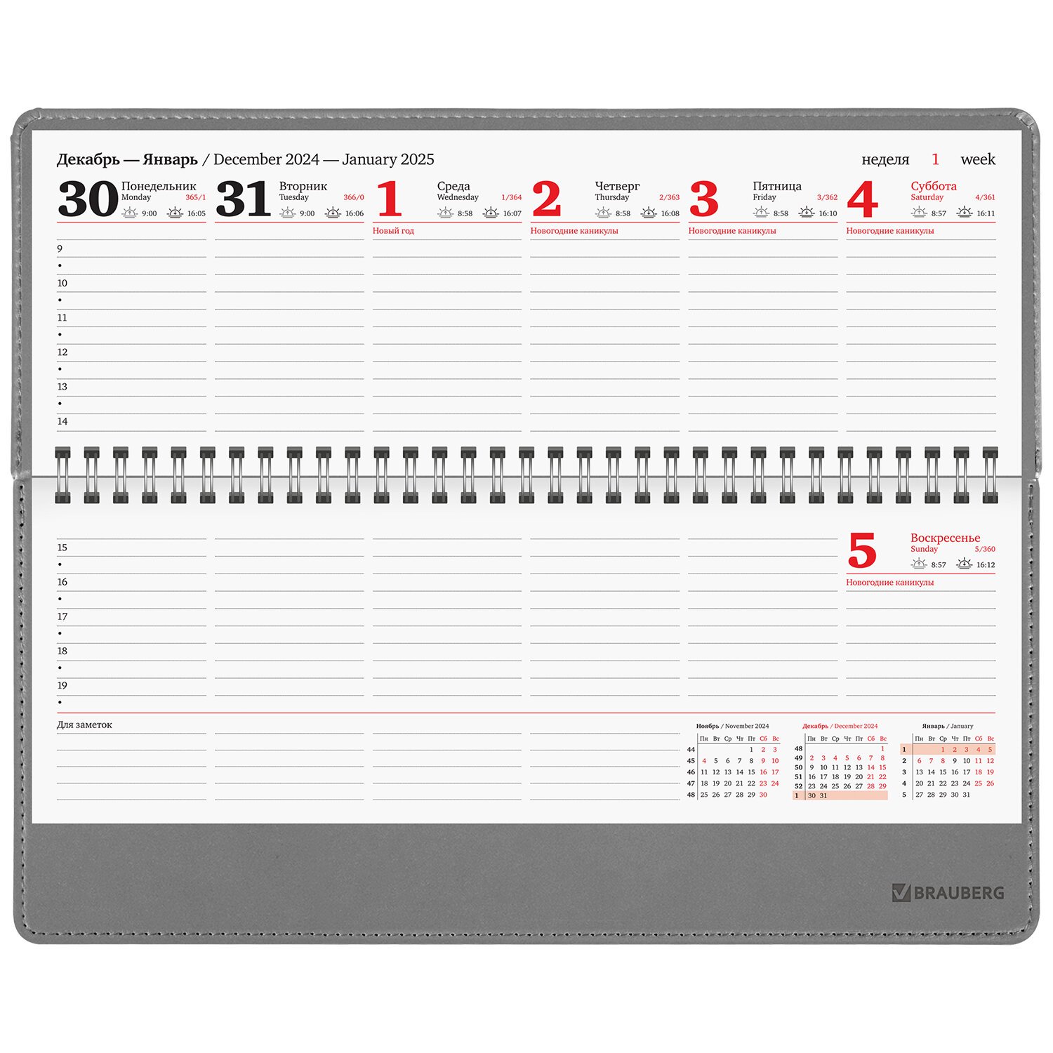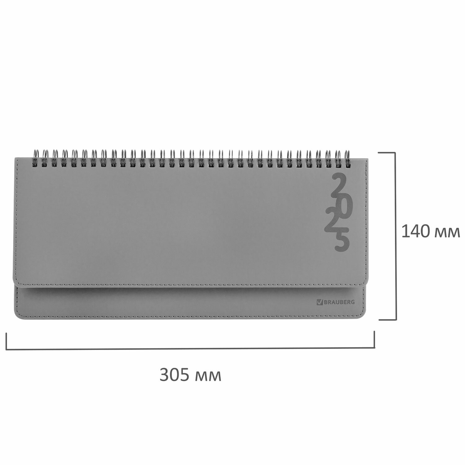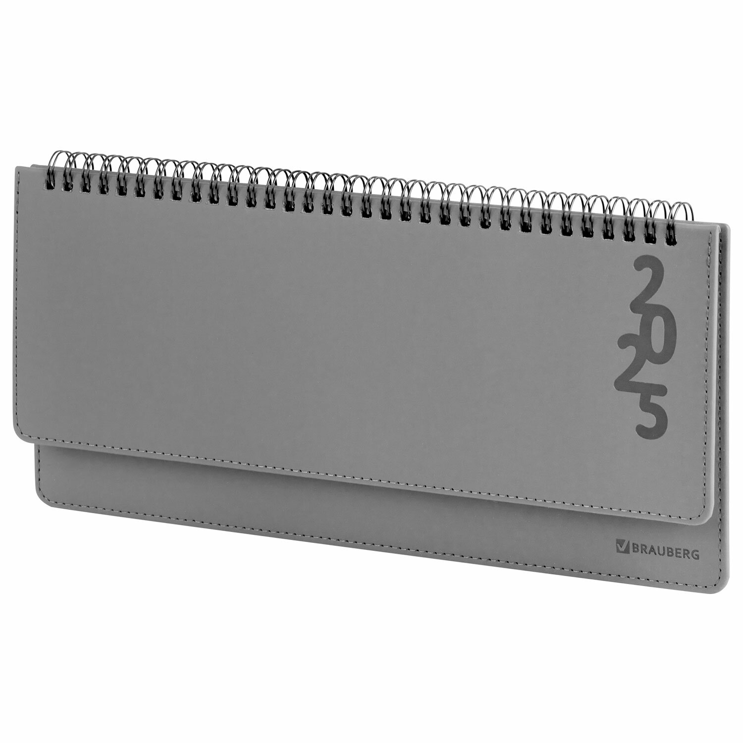 Планинг датированный 2025 305х140 мм BRAUBERG "Up", под кожу, серый, 115705