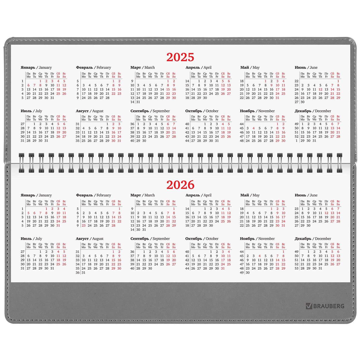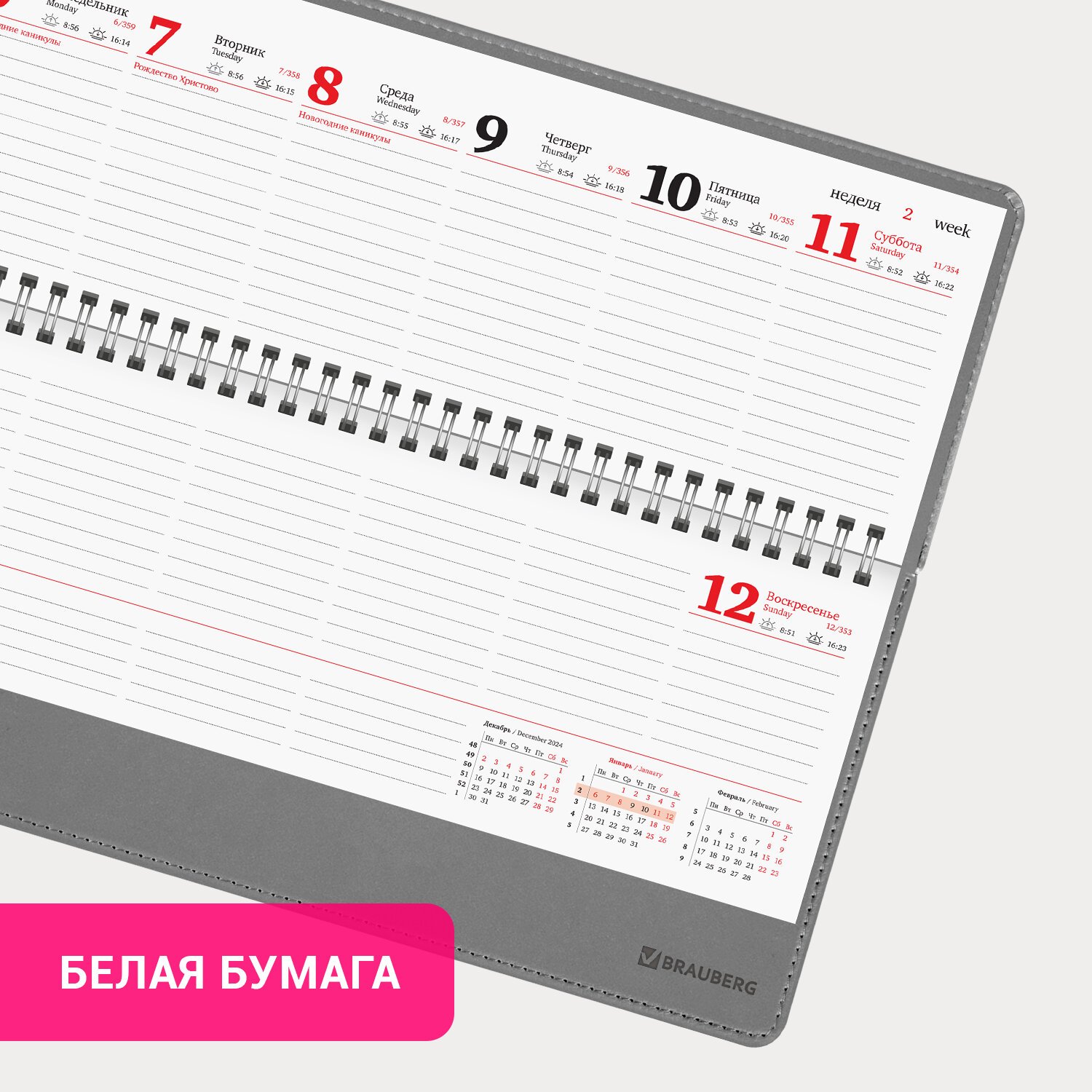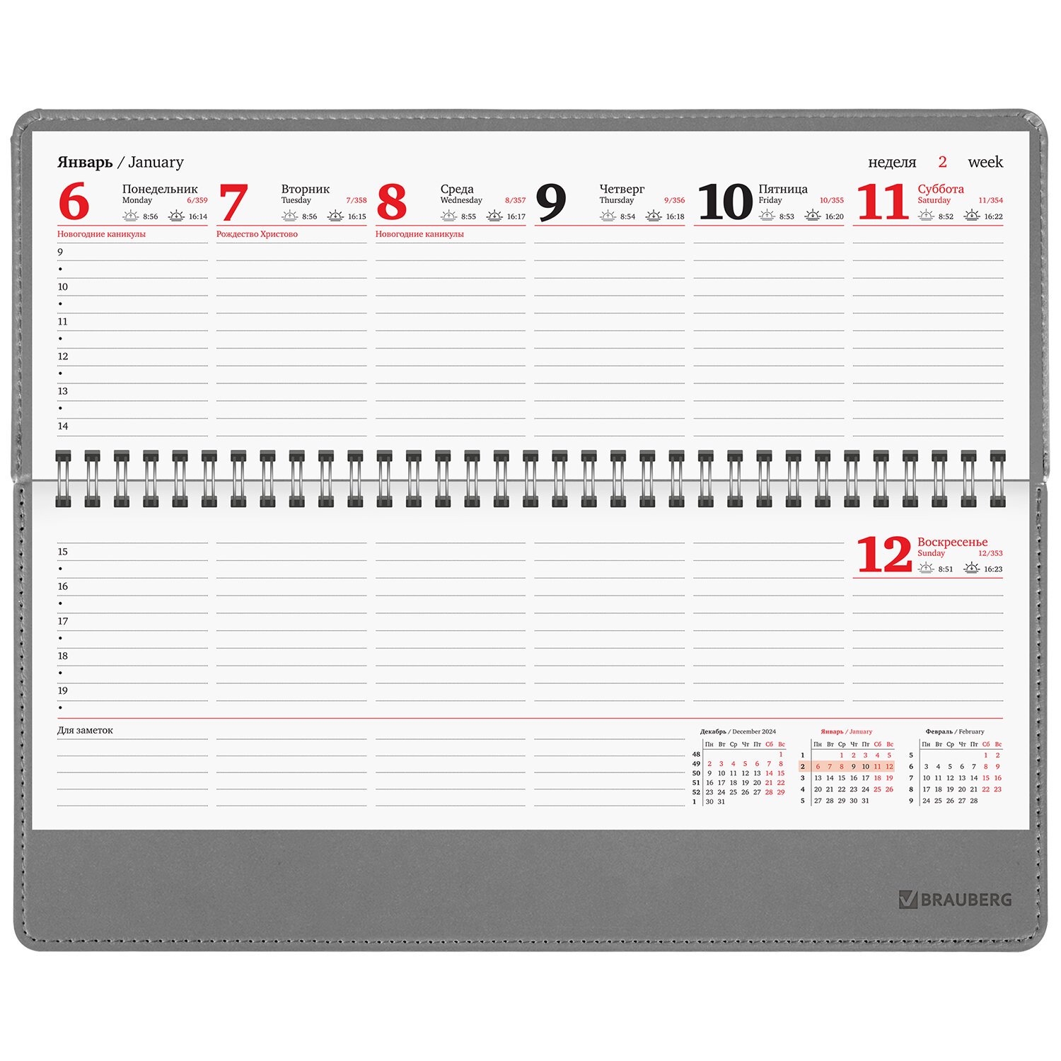 Планинг датированный 2025 305х140 мм BRAUBERG "Up", под кожу, серый, 115705