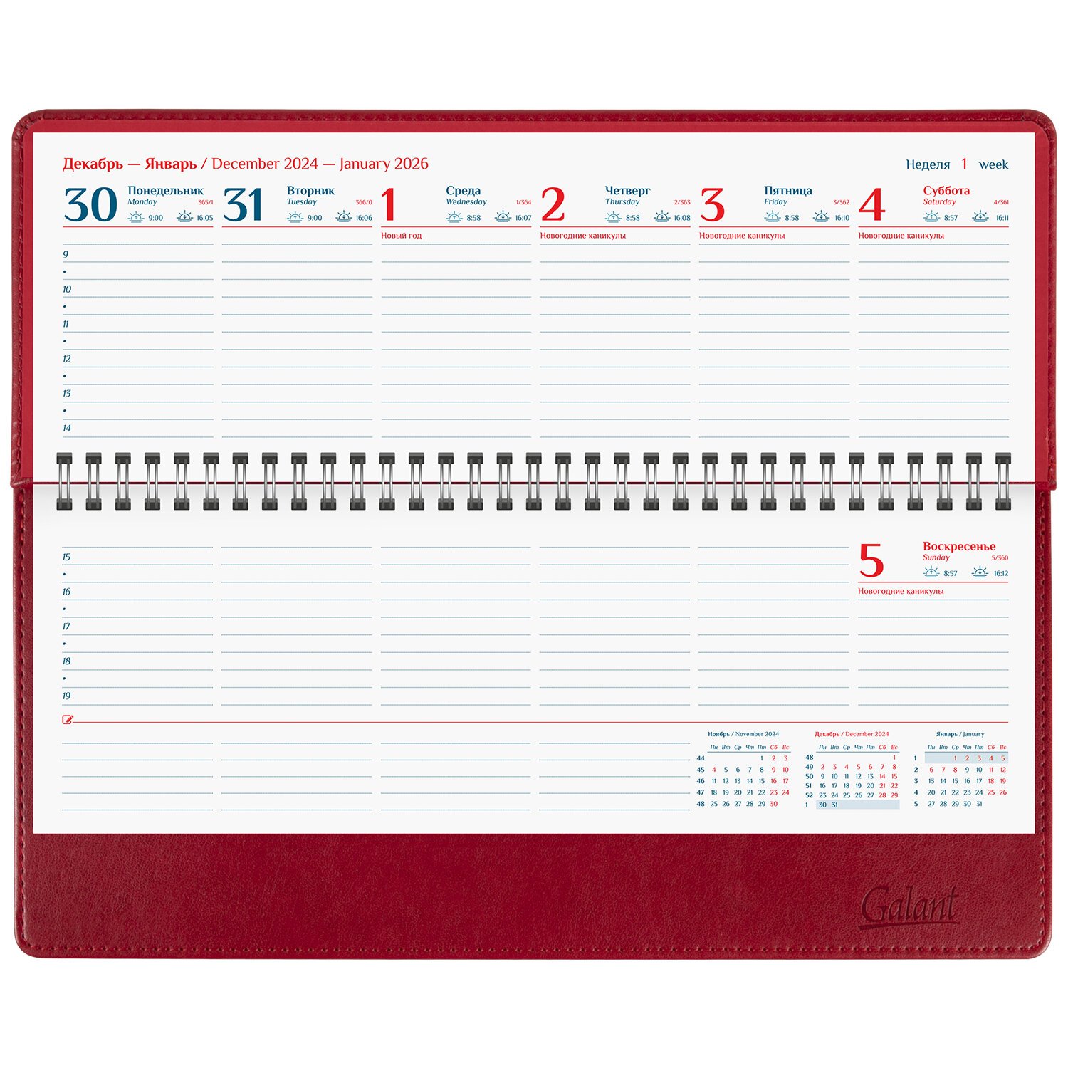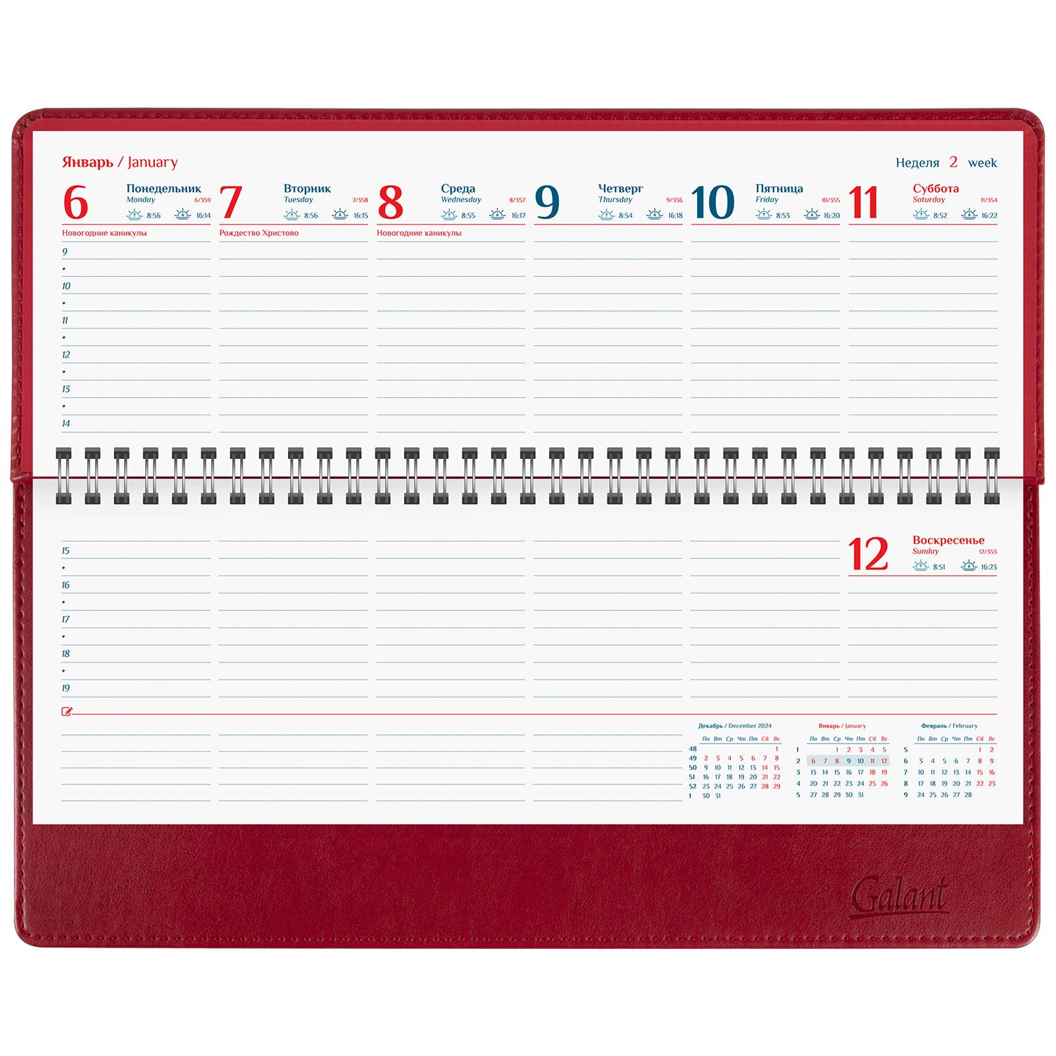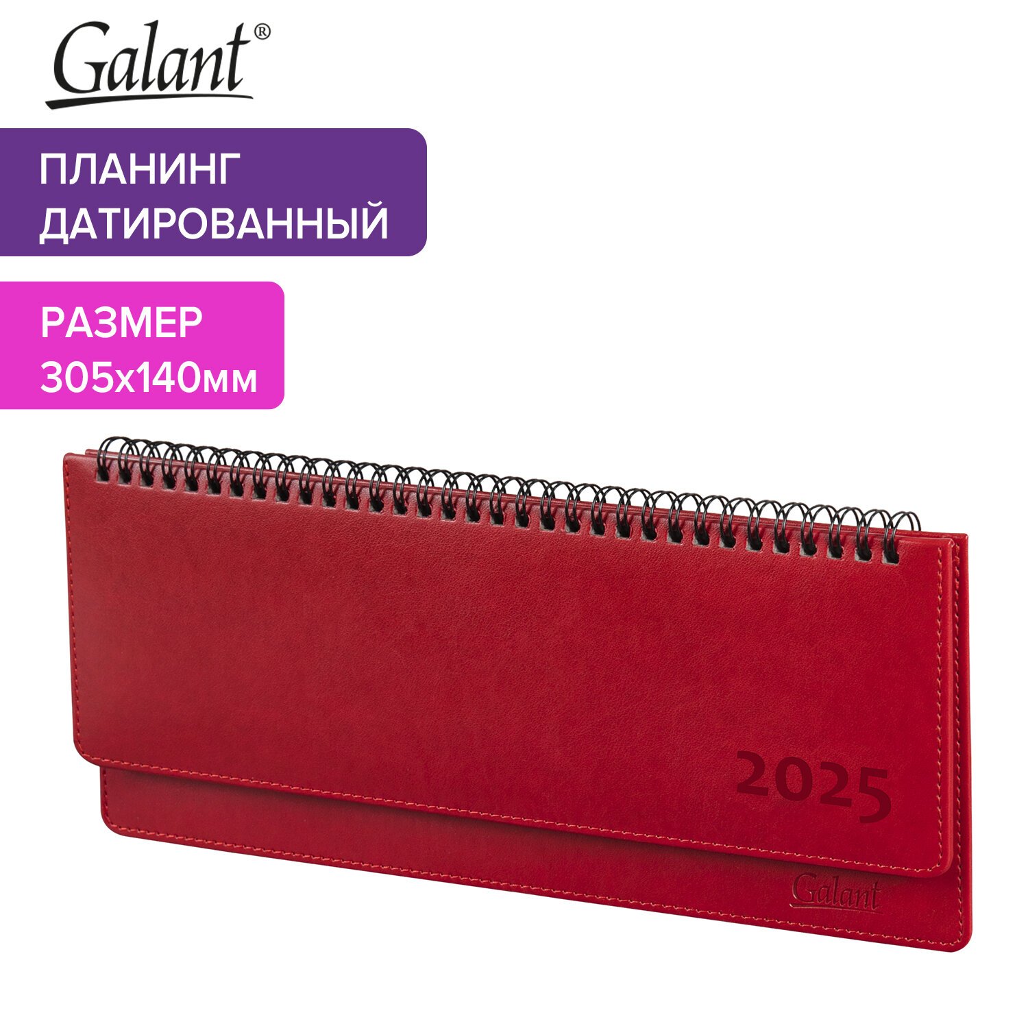 Планинг датированный 2025 305х140 мм GALANT "Ritter", под кожу, красный, 115706