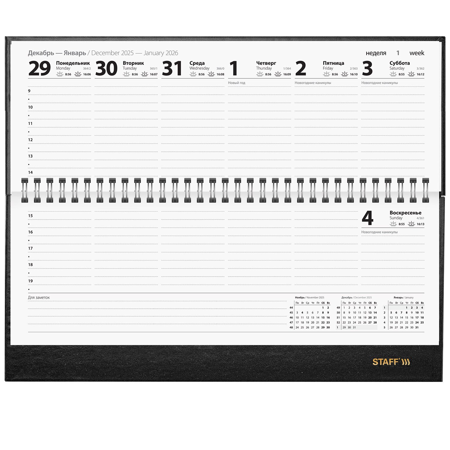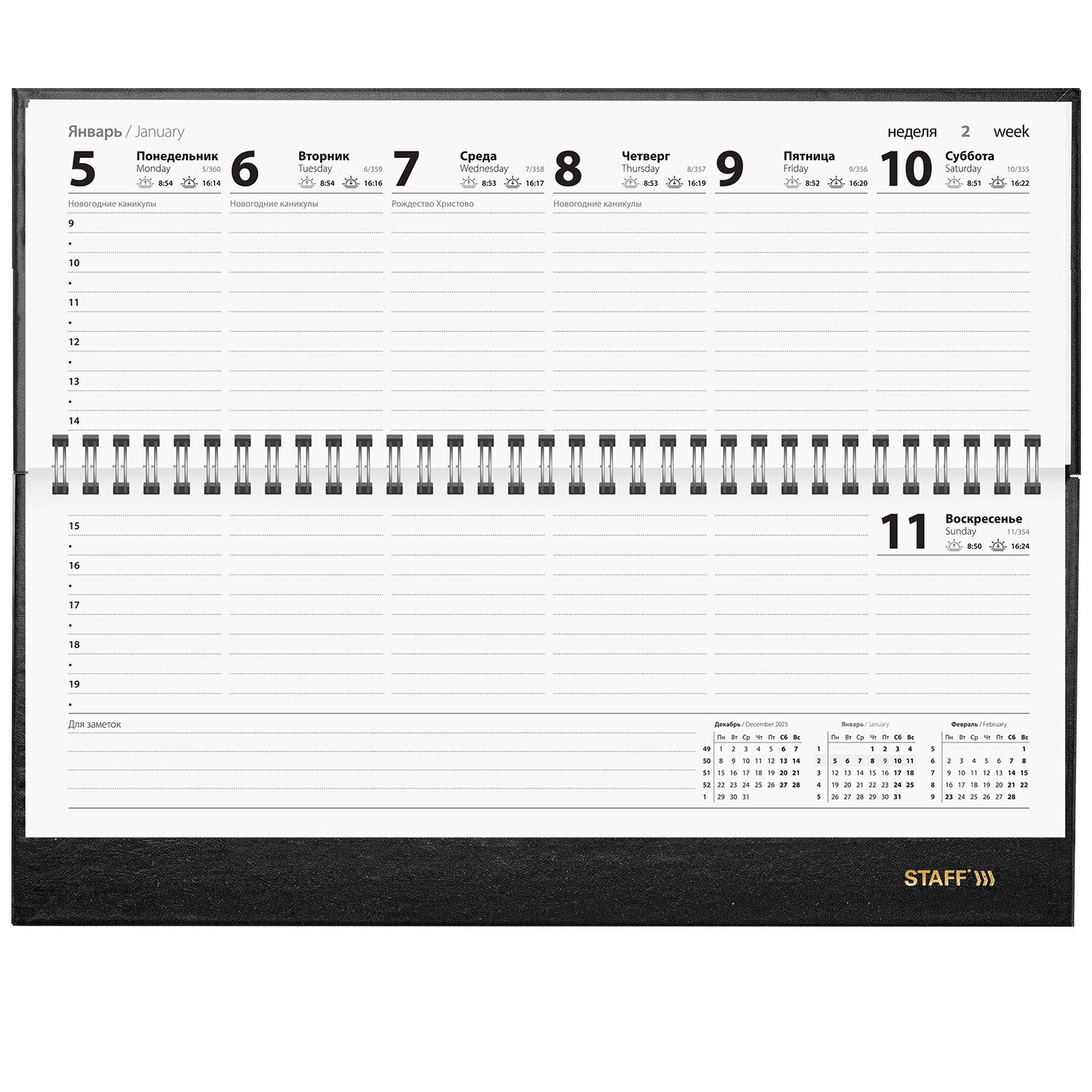 В датированном планинге STAFF все дни недели расположены на одном развороте, благодаря чему очень удобно планировать важные дела на неделю вперед.