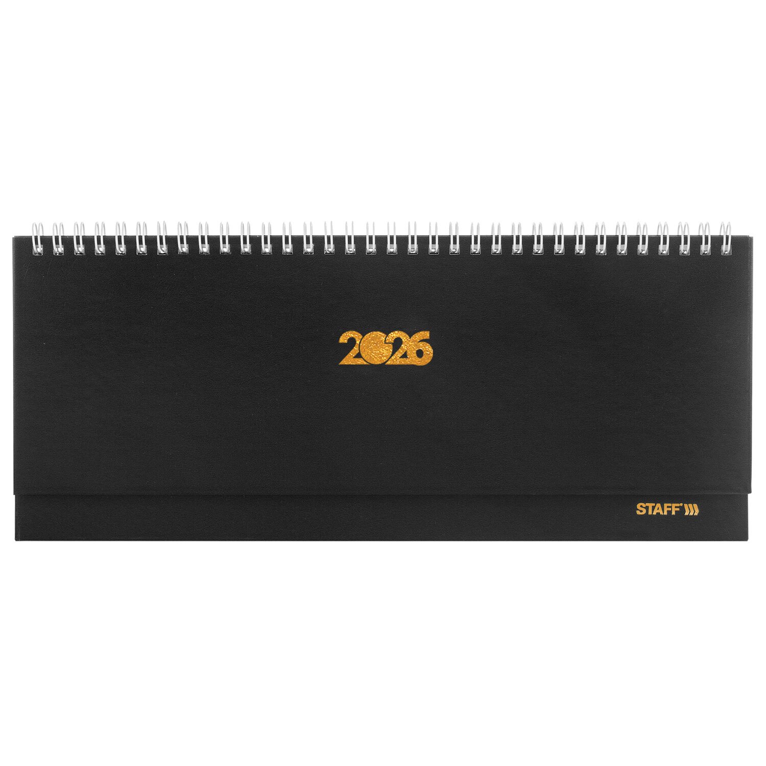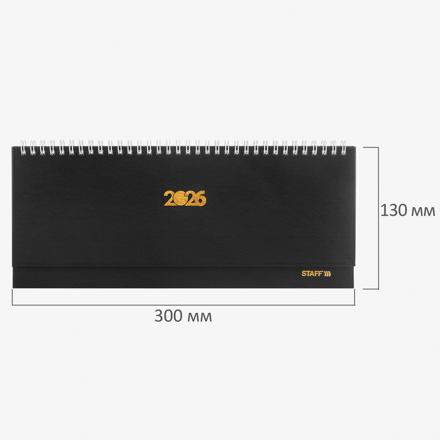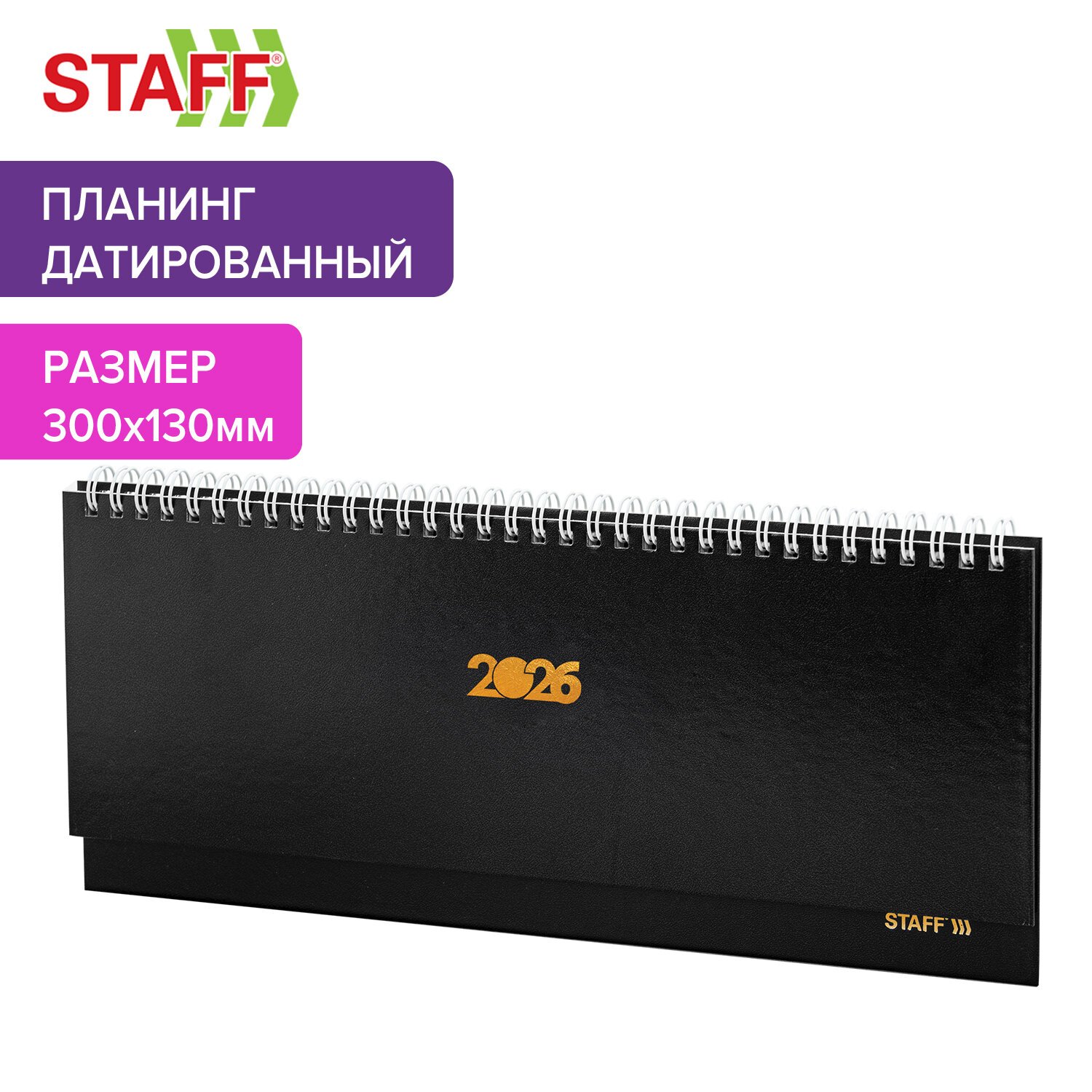 Планинг датированный 2026 300х130мм, STAFF, гребень, обложка бумвинил, 64л, черный, 117360