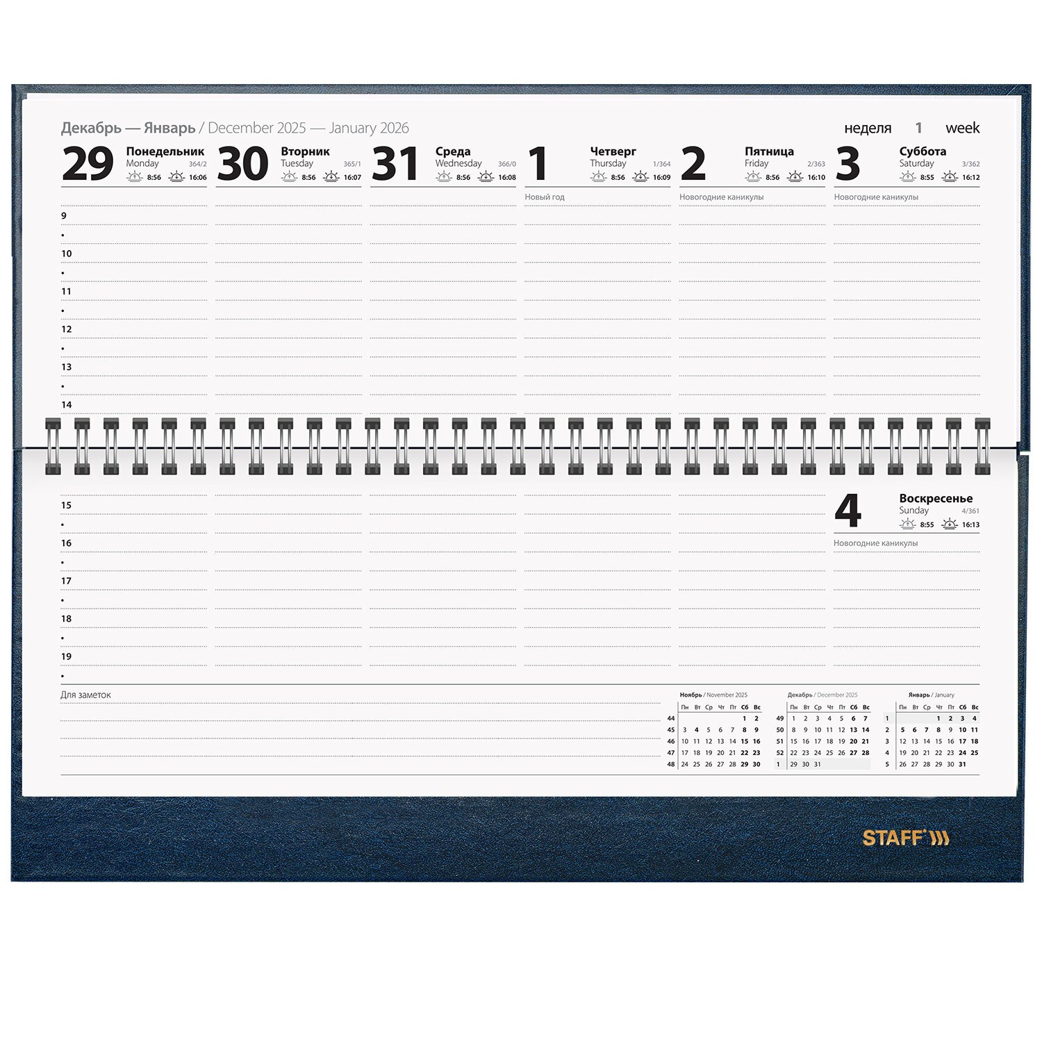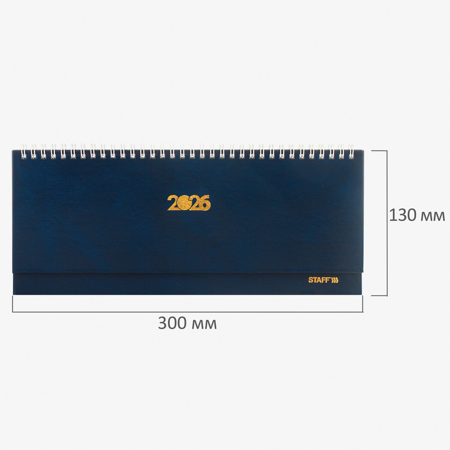 Планинг датированный 2026 300х130мм, STAFF, гребень, обложка бумвинил, 64л, синий, 117358
