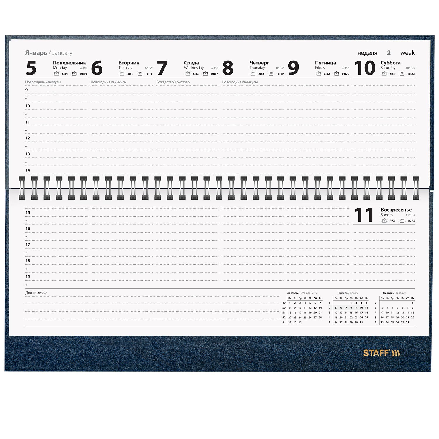 В датированном планинге STAFF все дни недели расположены на одном развороте, благодаря чему очень удобно планировать важные дела на неделю вперед.