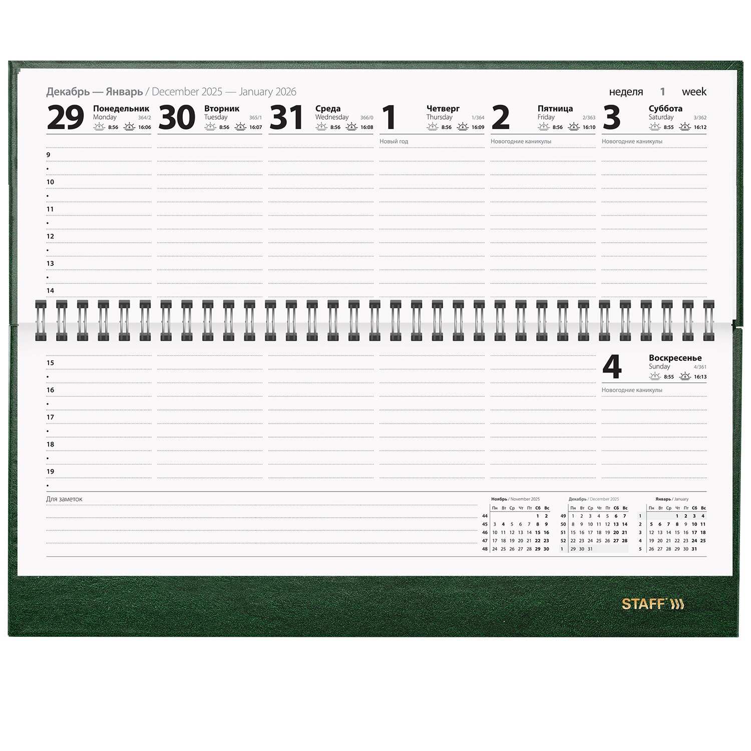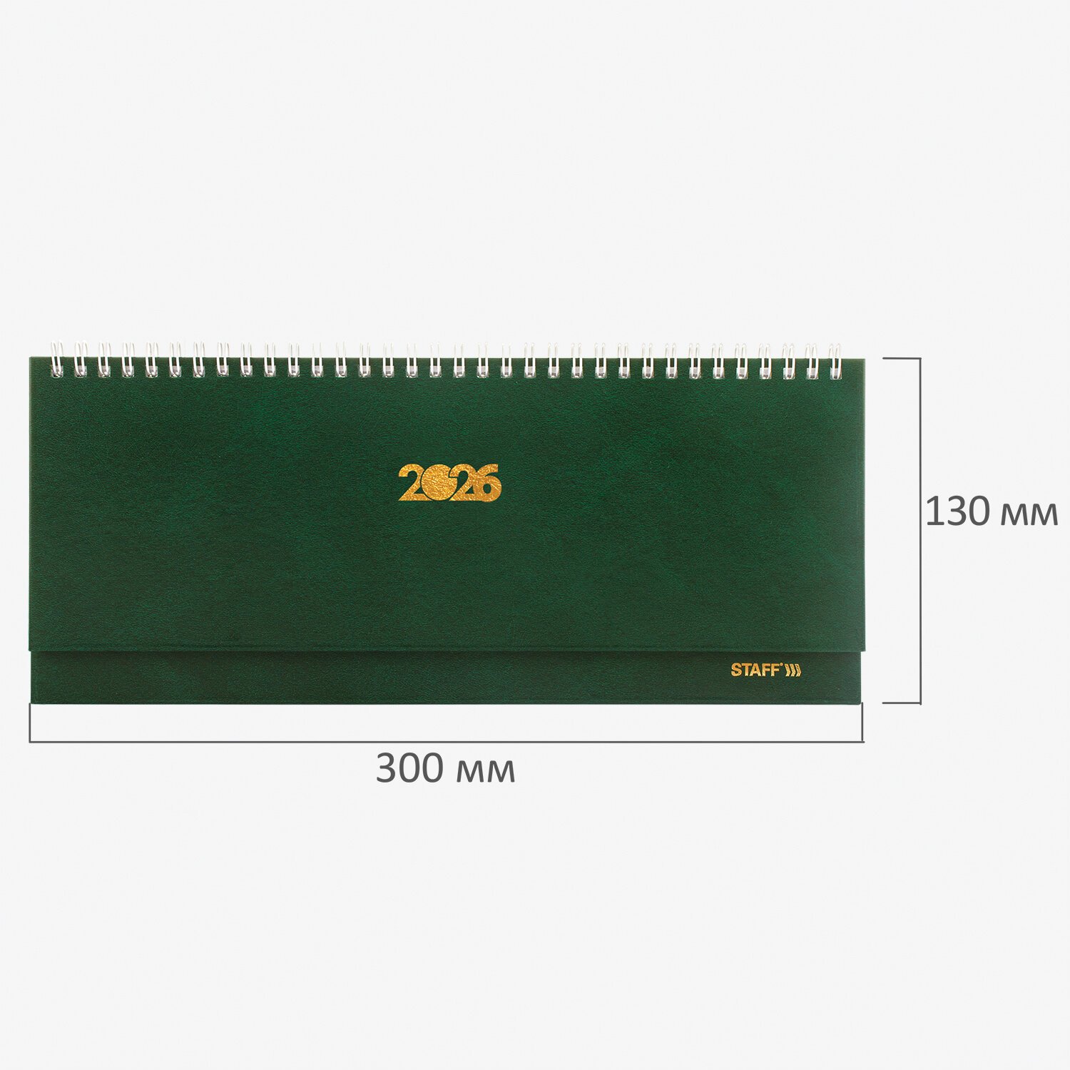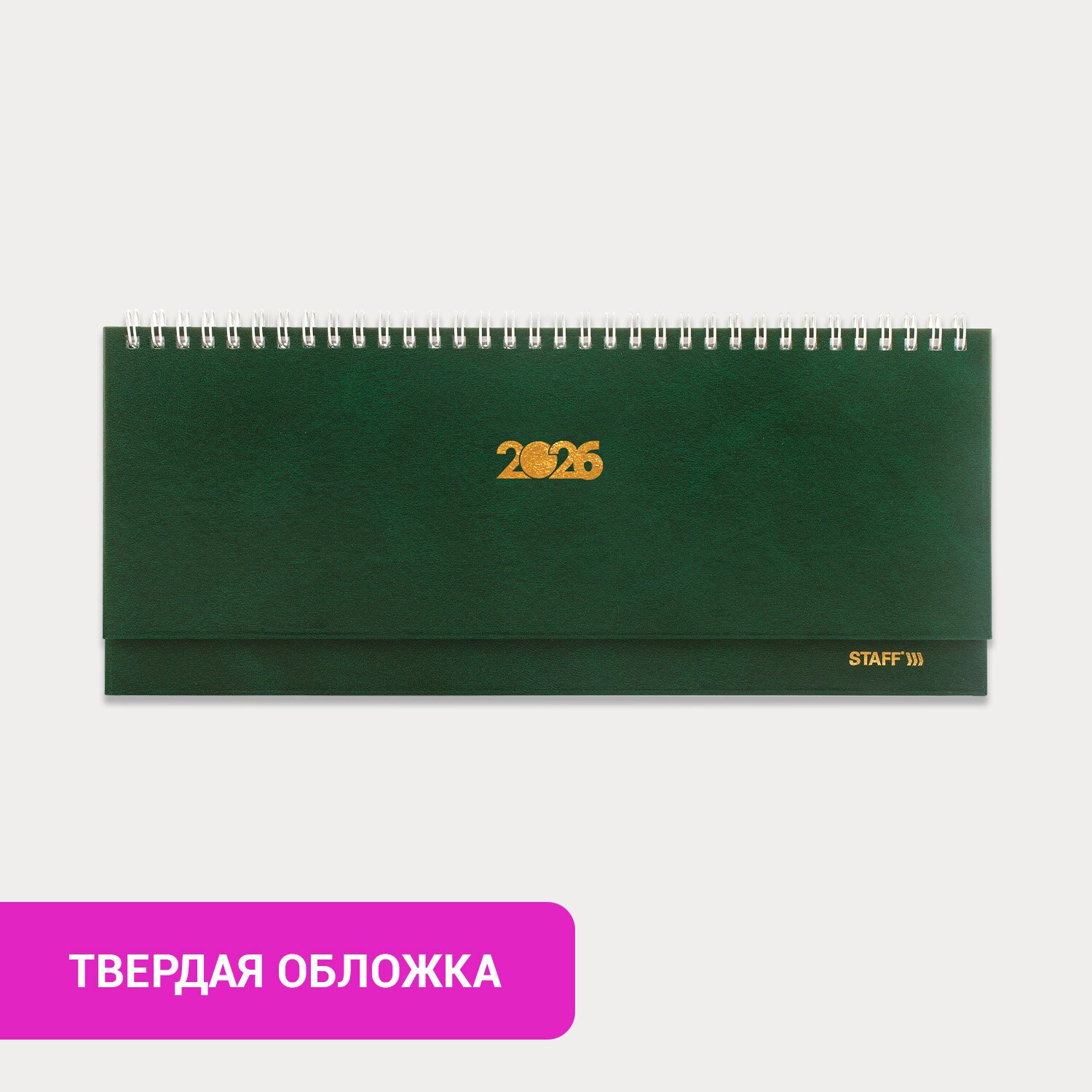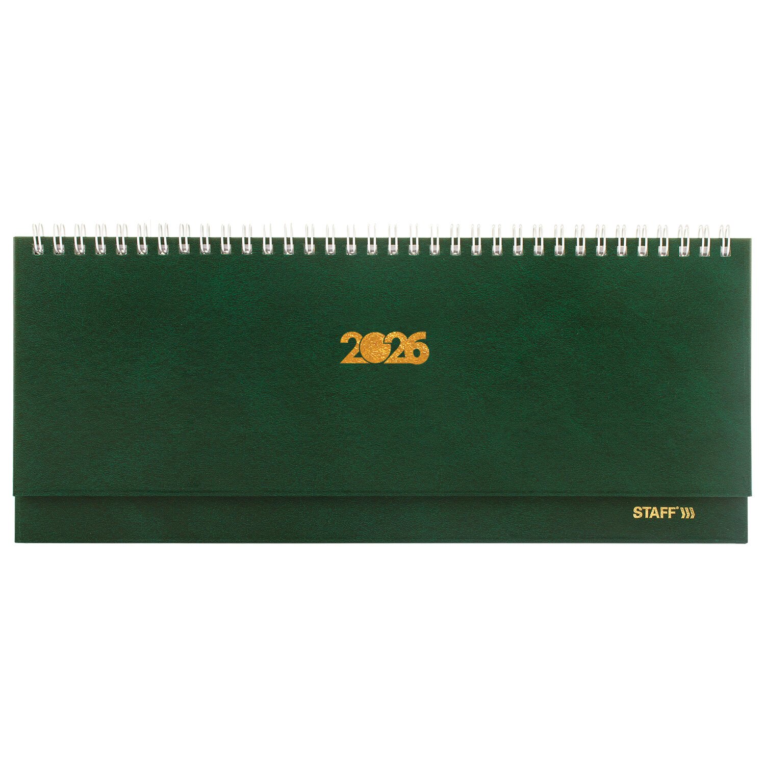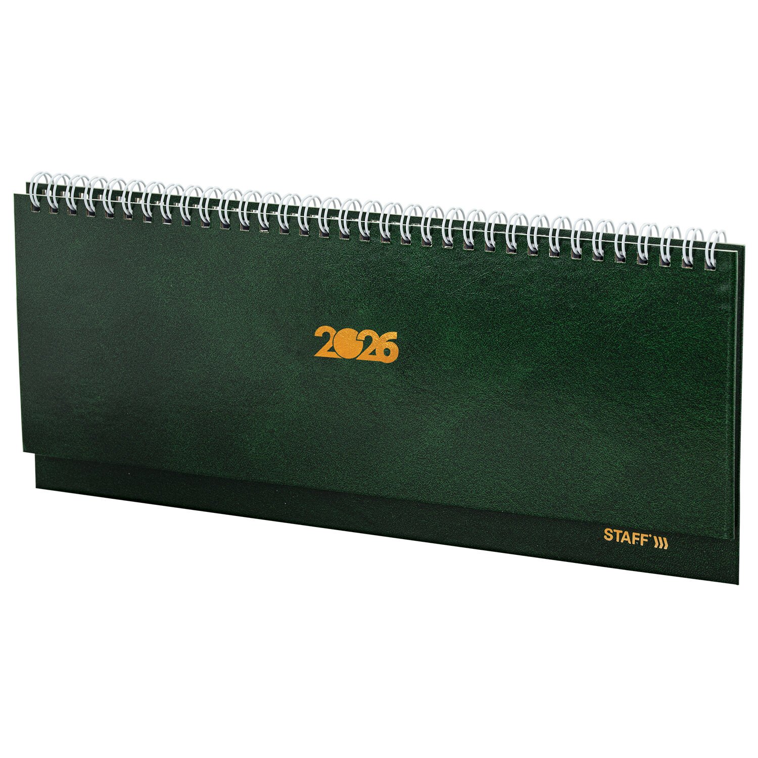Планинг датированный 2026 300х130мм, STAFF, гребень, обложка бумвинил, 64л, зеленый, 117361