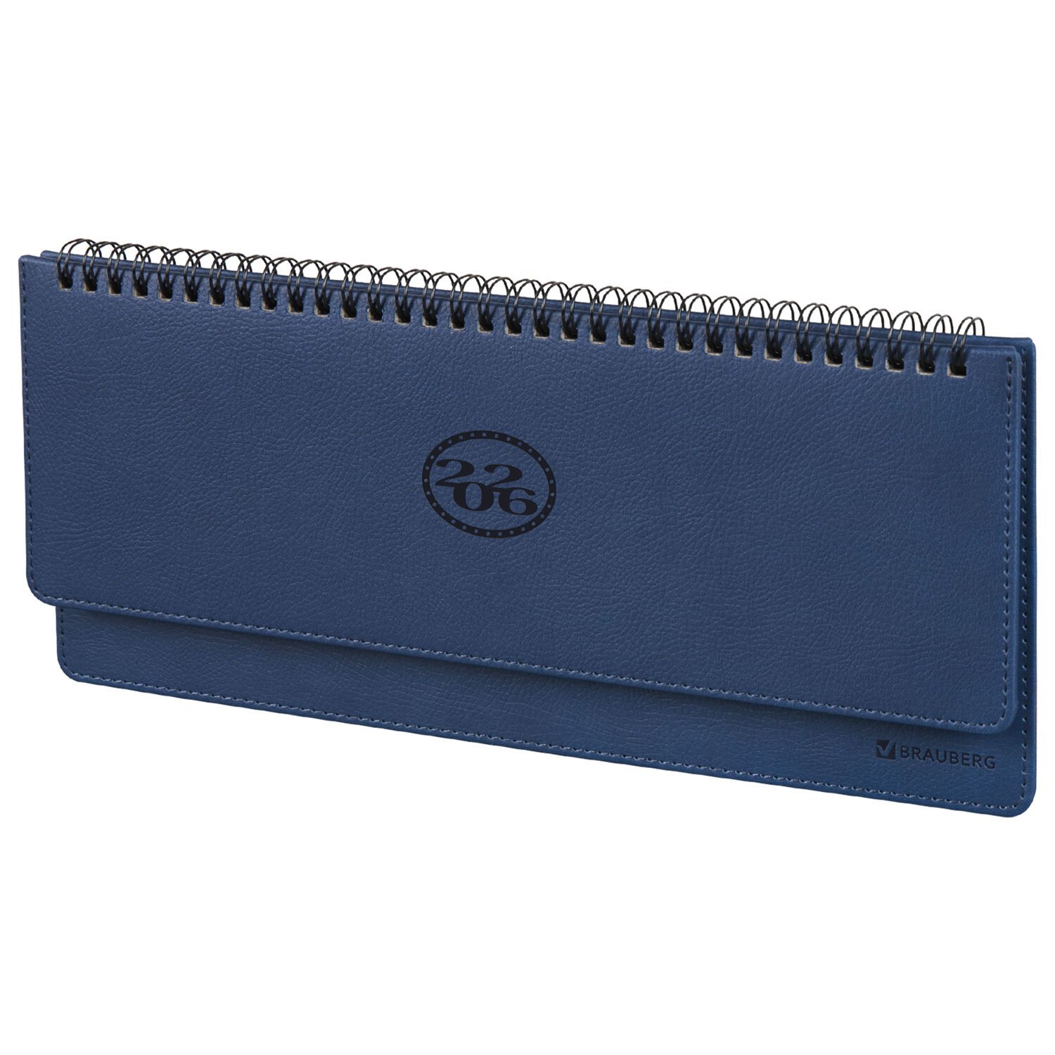 Планинг датированный 2026 305х140мм BRAUBERG Imperial, под кожу, синий, 117228
