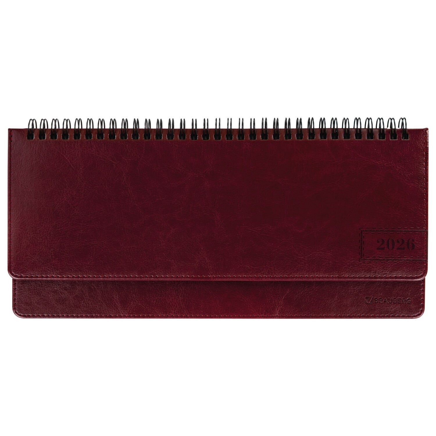 Планинг датированный 2026 305х140мм BRAUBERG Imperial, под кожу, бордовый, 117227