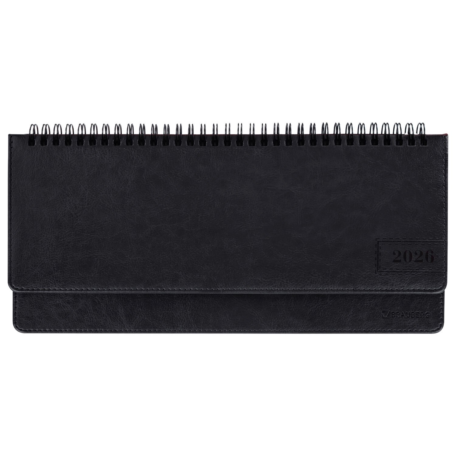 Планинг датированный 2026 305х140мм BRAUBERG Comodo, под кожу, черный, 117223