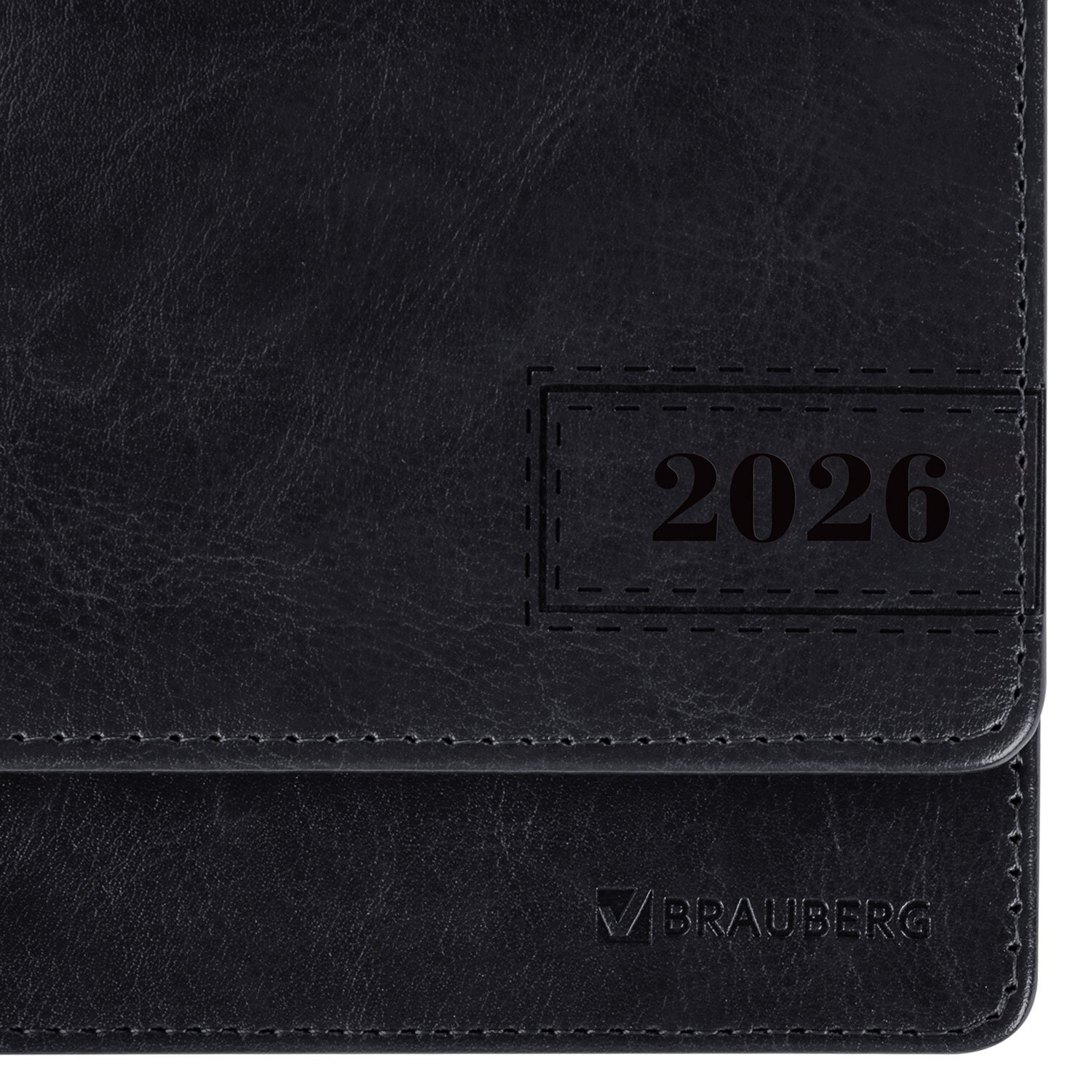 Планинг датированный 2026 305х140мм BRAUBERG Imperial, под кожу, черный, 117229